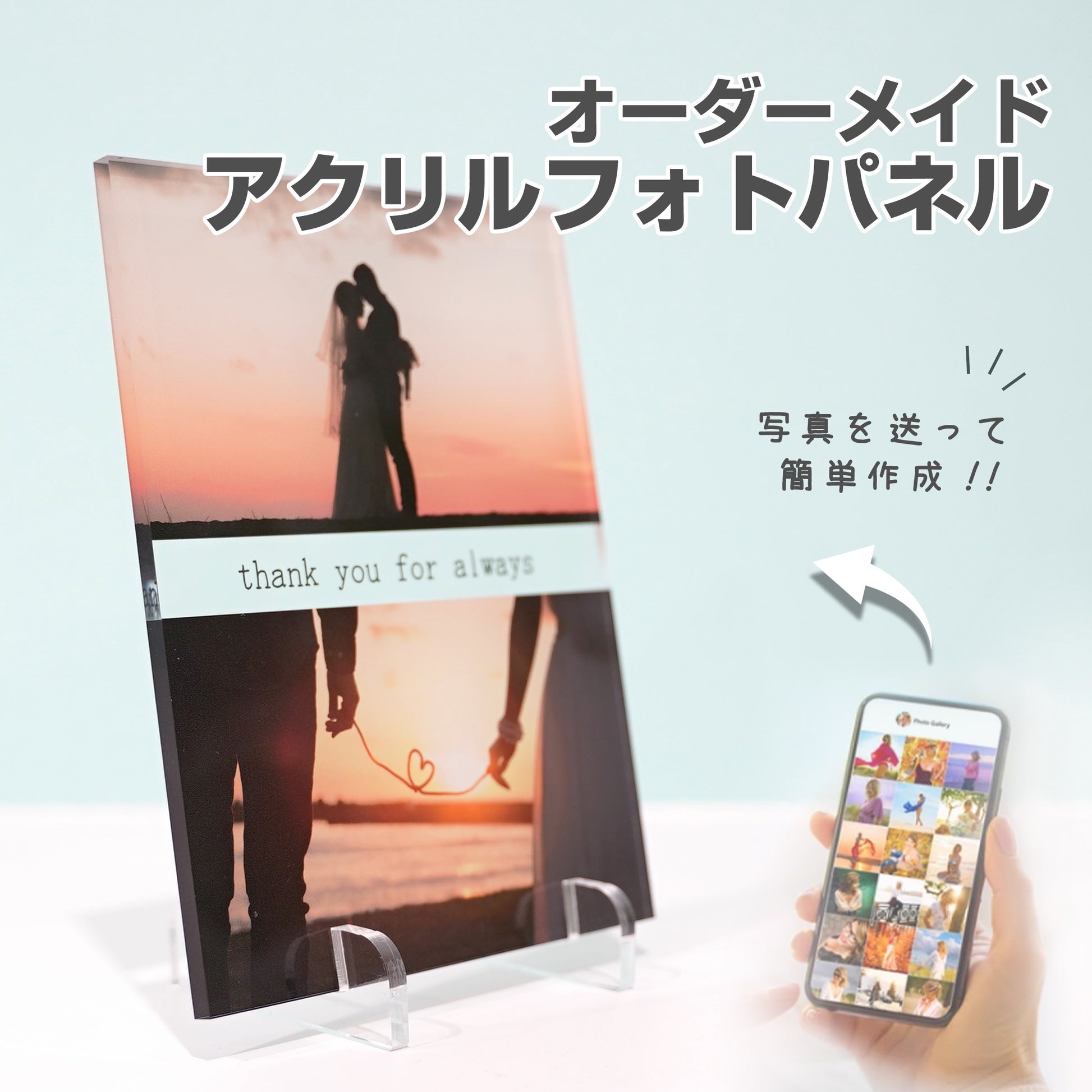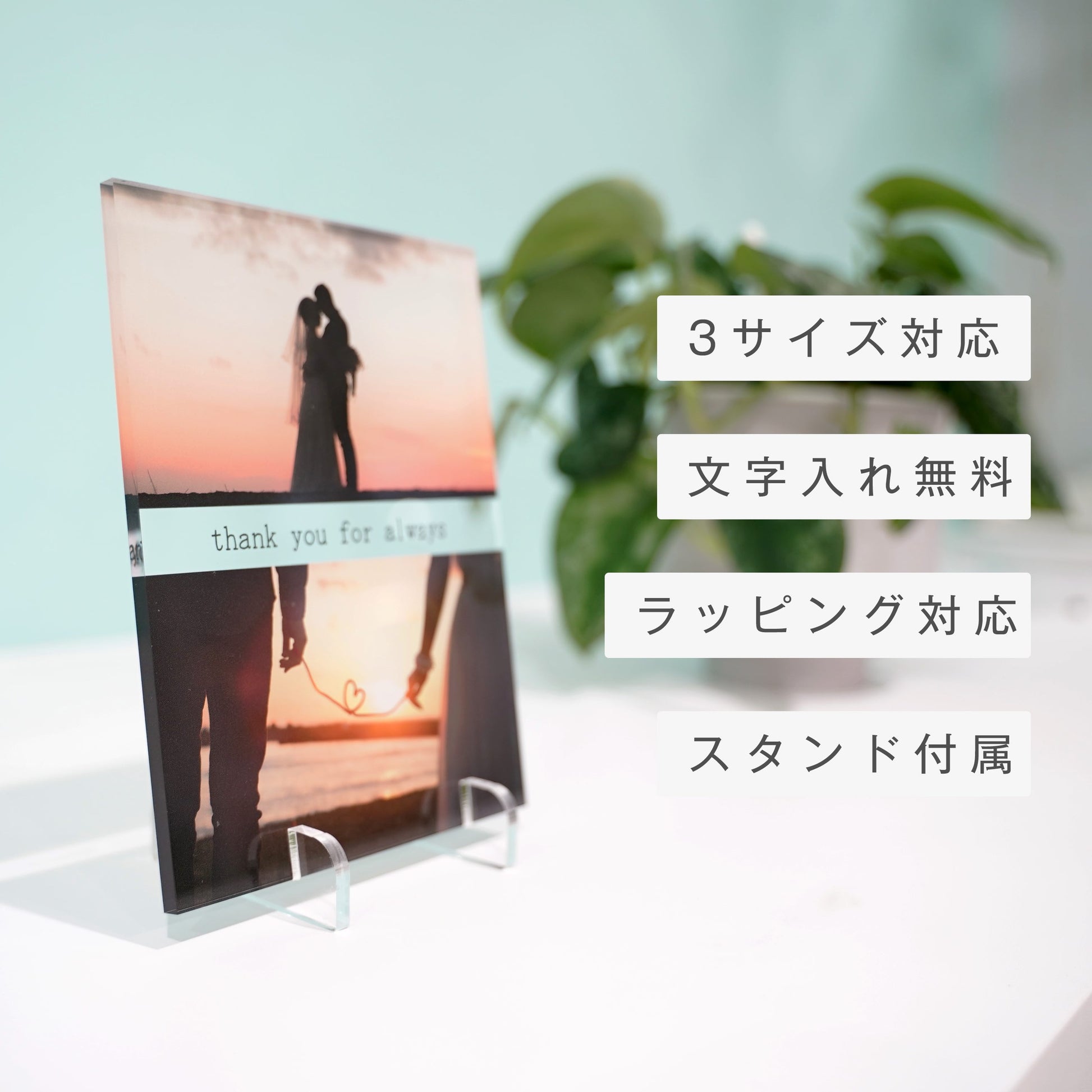 お写真2枚とメッセージを組み合わせて作れるアクリルパネル。