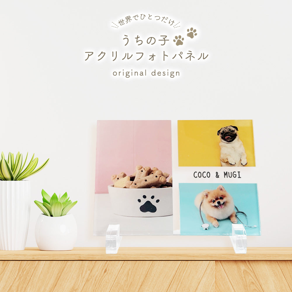 お写真3枚とメッセージを組み合わせて使えるアクリルパネル。