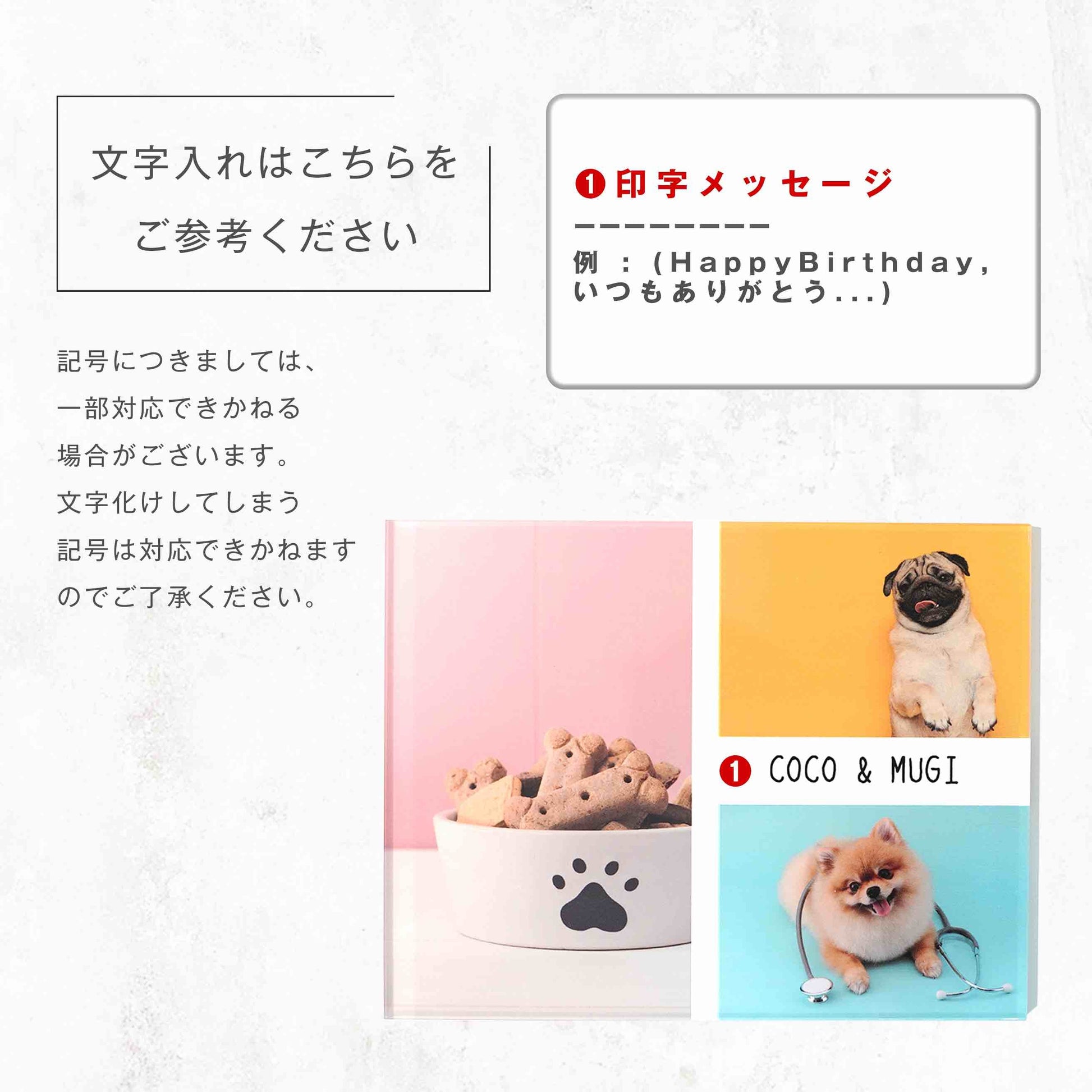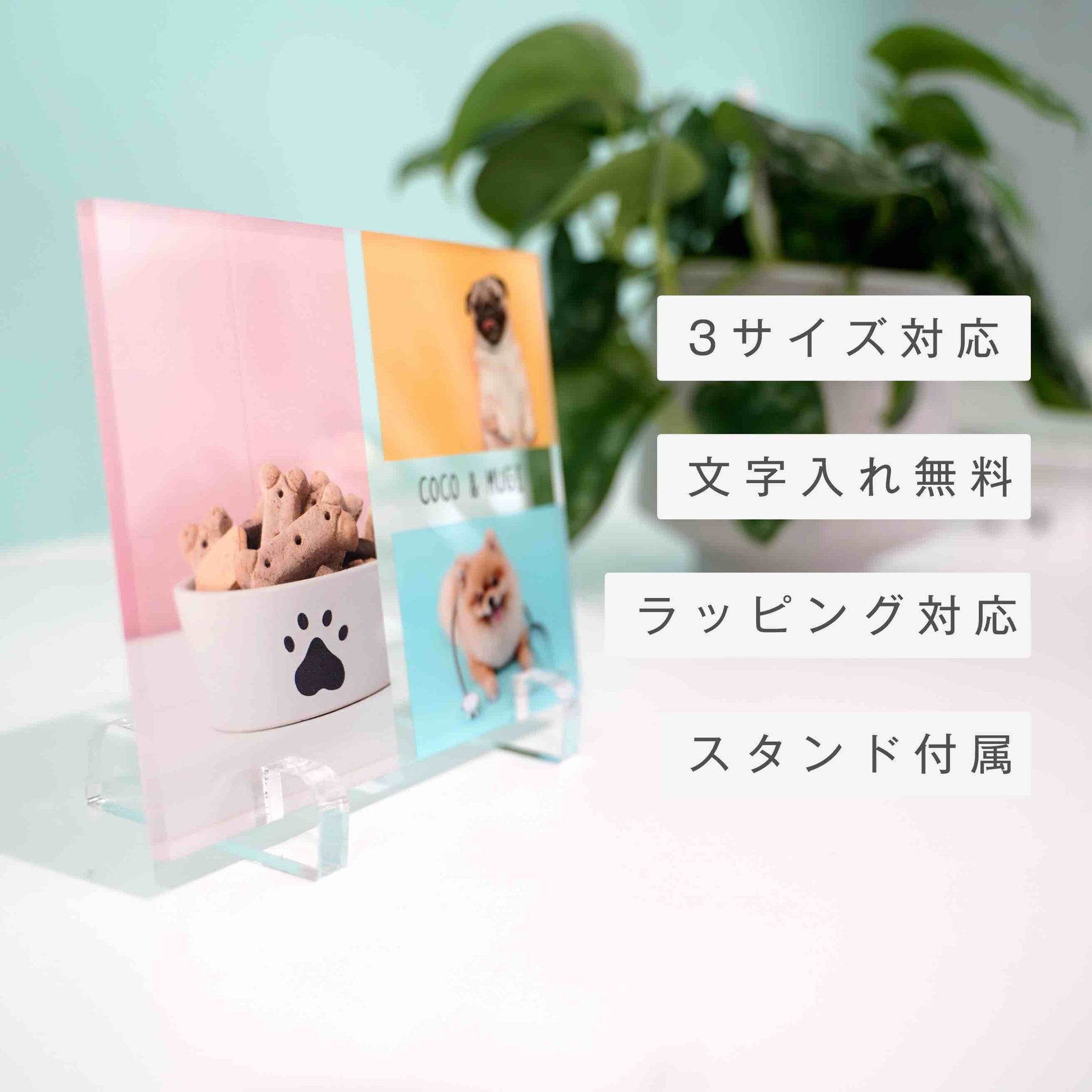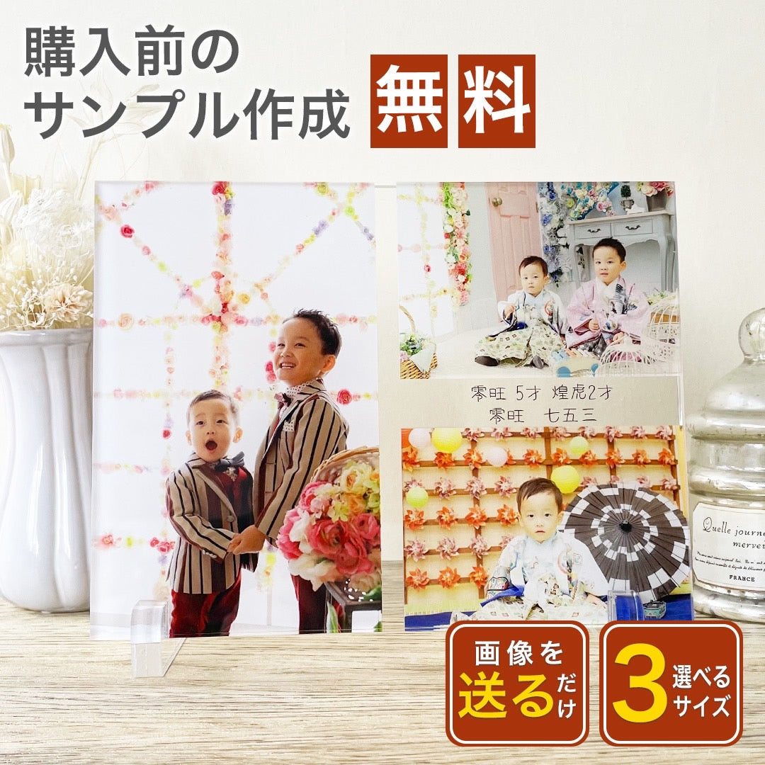 お写真3枚とメッセージを組み合わせて作れるアクリルパネル。