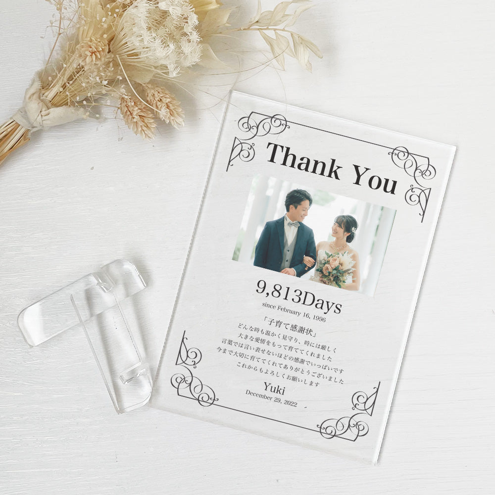 結婚 結婚式 アクリル子育て感謝状 子育て 感謝状 ウエディング 新婚 花嫁 両親贈呈 母親 父親 贈呈用 記念品 新郎 新婦 結婚証明書 招待状 A29-1