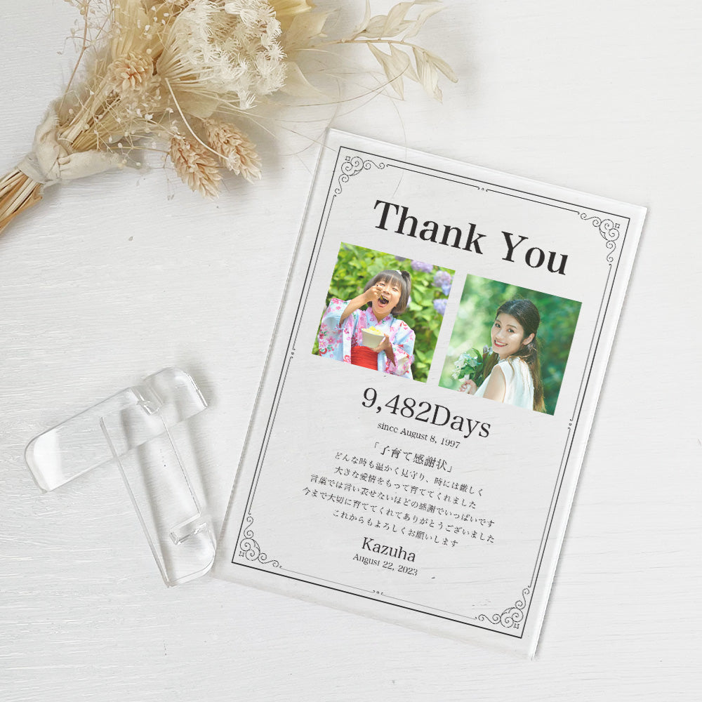 結婚 結婚式 アクリル子育て感謝状 子育て 感謝状 ウエディング 新婚 花嫁 両親贈呈 母親 父親 贈呈用 記念品 新郎 新婦 結婚証明書 招待状 A30