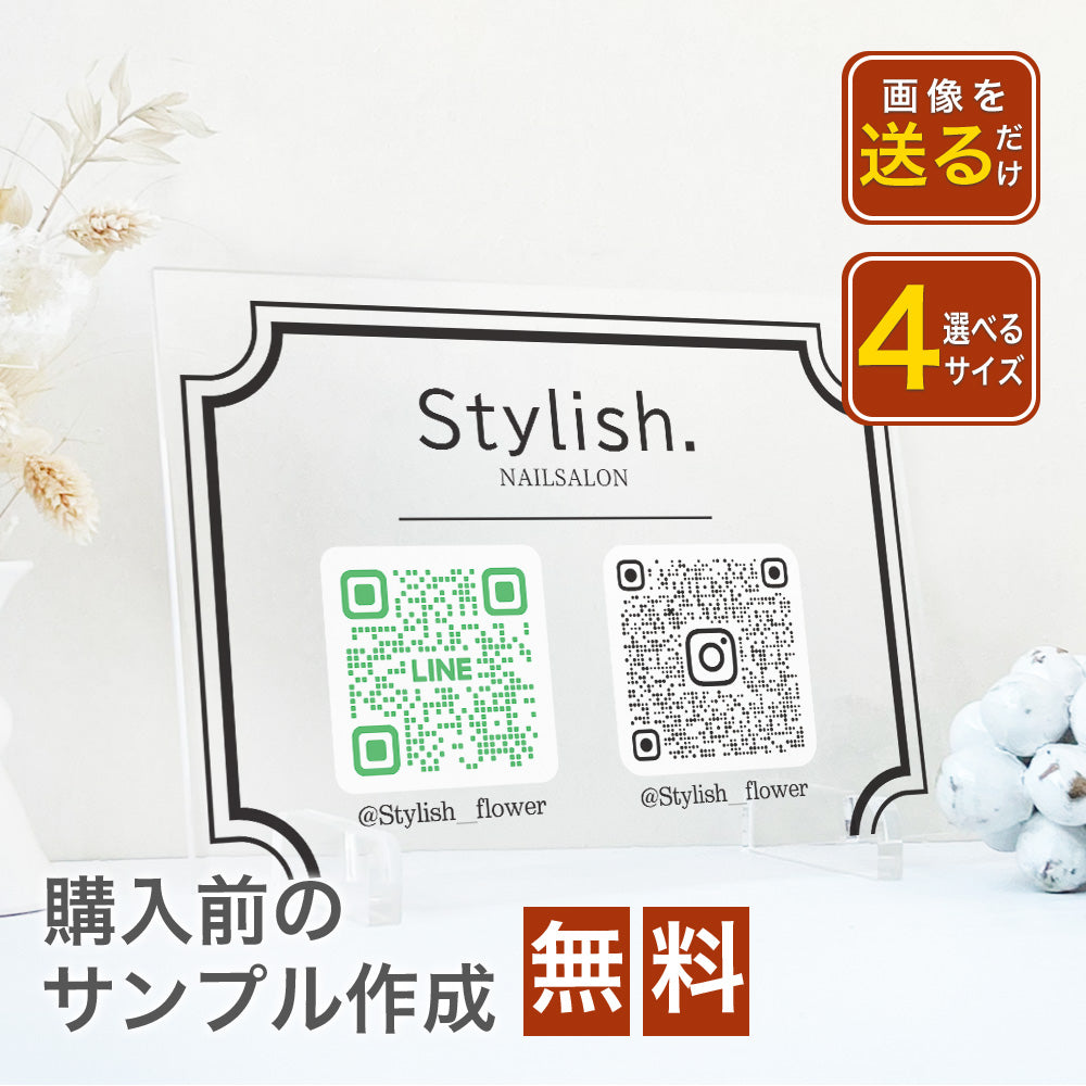 【全4デザイン】 卓上アクリルQRフレーム QRコード 2個 飾る 読み込み インテリア 周年祝い A36-3
