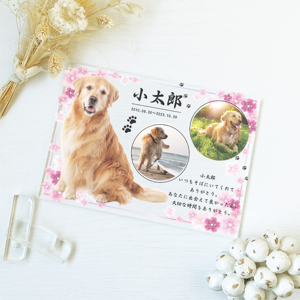 お好みのお写真とメッセージを組み合わせてプリントできます。アクリルの透明感がお洒落で高級感のある定番人気商品です!こちらの商品はスタンド脚が付属されています。