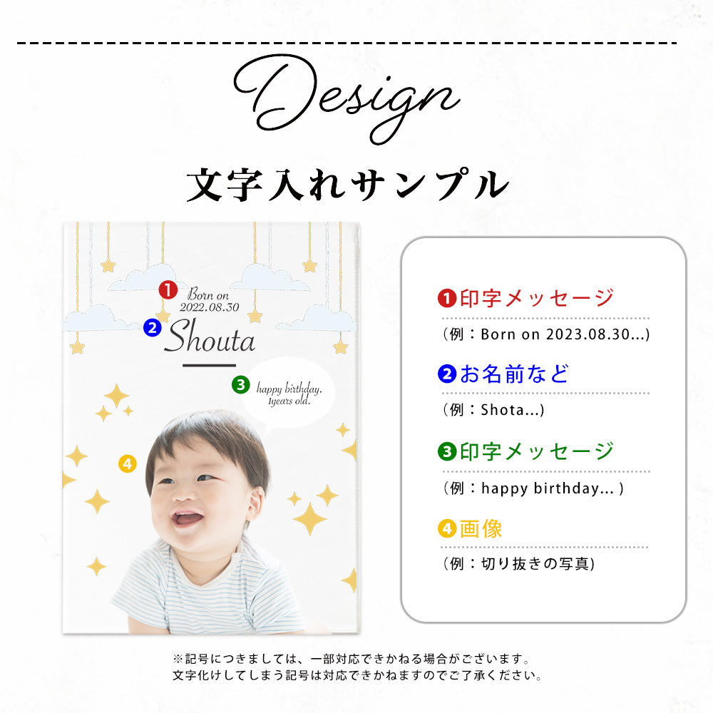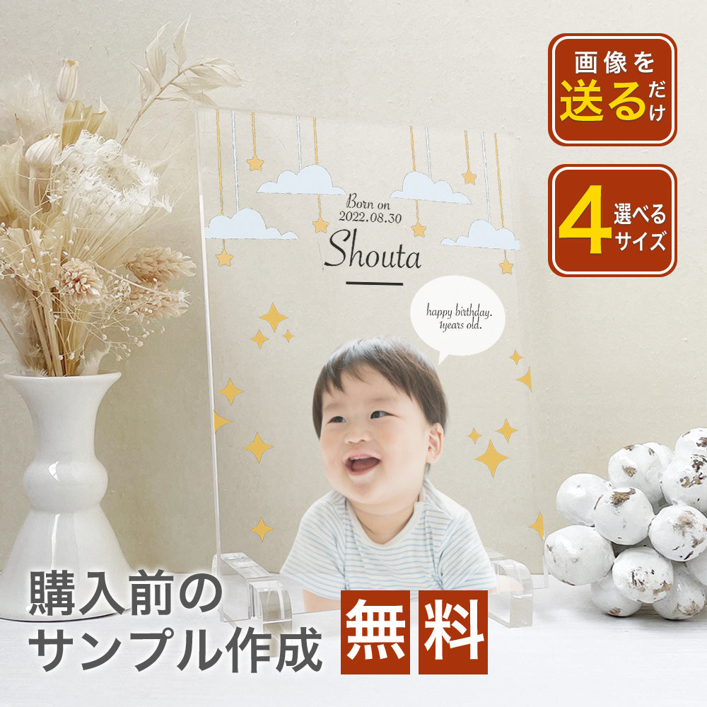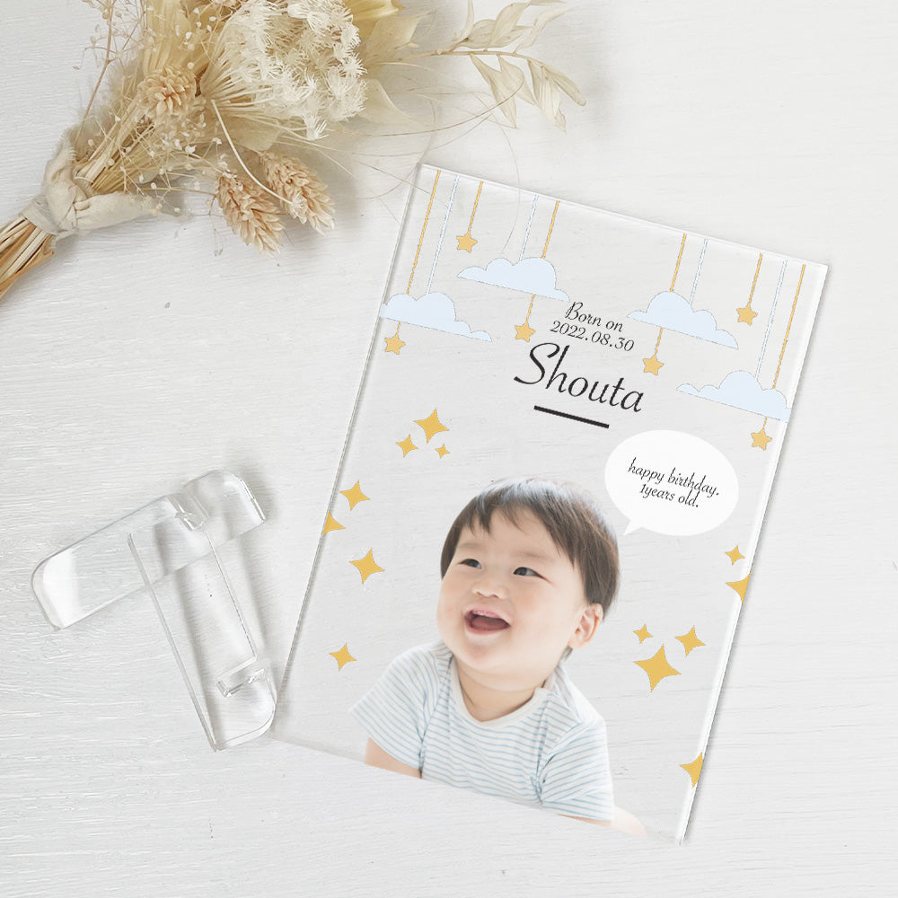 お子様のお写真と名前、選択肢を組み合わせて使えるアクリルパネル。