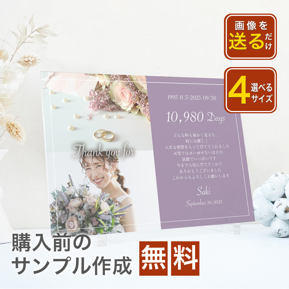 お写真とメッセージを組み合わせて使えるアクリルパネル。 シンプルでありながらどこに飾っても可愛いアクリルパネルは当店の人気商品です。 セットでアクリルのスタンドが付属しております。