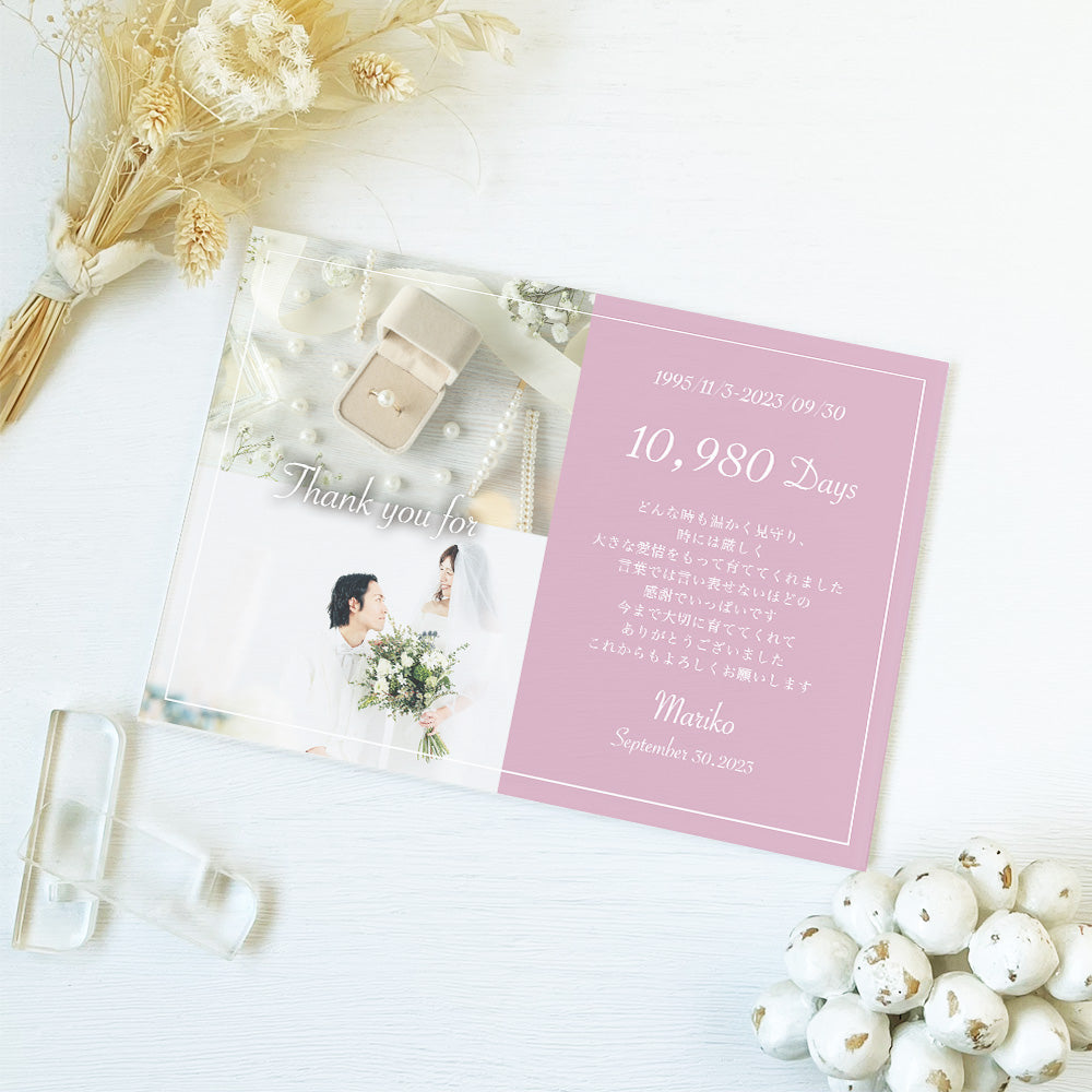 お写真とメッセージを組み合わせて使えるアクリルパネル。 シンプルでありながらどこに飾っても可愛いアクリルパネルは当店の人気商品です。 セットでアクリルのスタンドが付属しております。