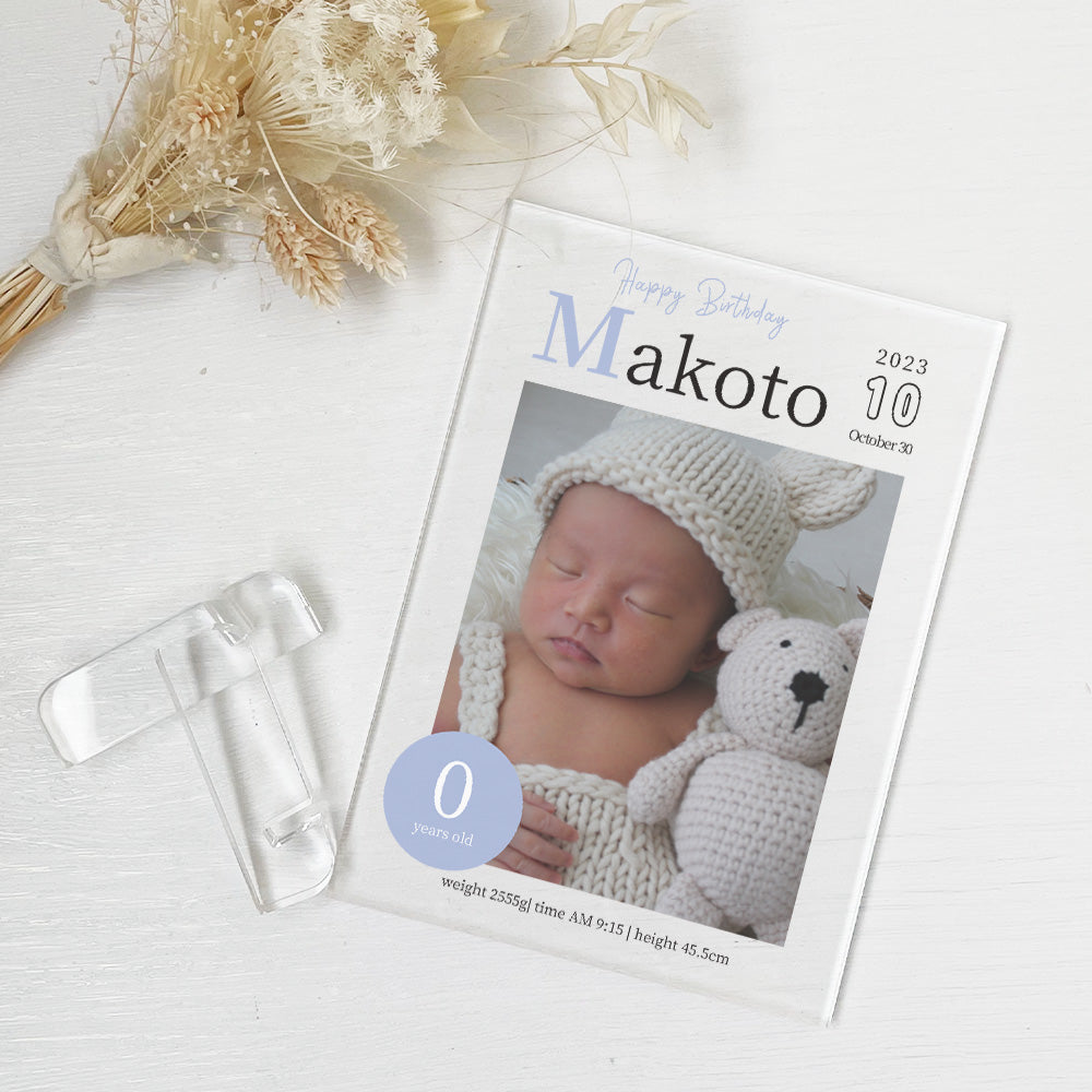 お写真1枚とメッセージを組み合わせて使えるアクリルパネル。 シンプルでありながらどこに飾っても可愛いアクリルパネルは当店の人気商品です。 セットでアクリルのスタンドが付属しており