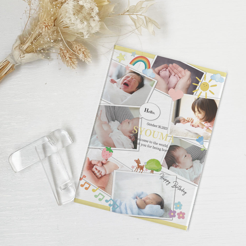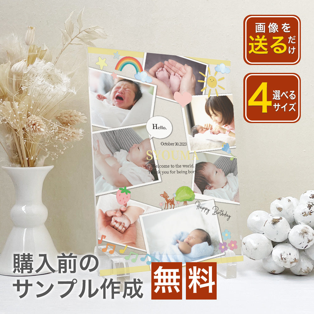 お写真7枚とメッセージを組み合わせて使えるアクリルパネル。 シンプルでありながらどこに飾っても可愛いアクリルパネルは当店の人気商品です。 セットでアクリルのスタンドが付属しており