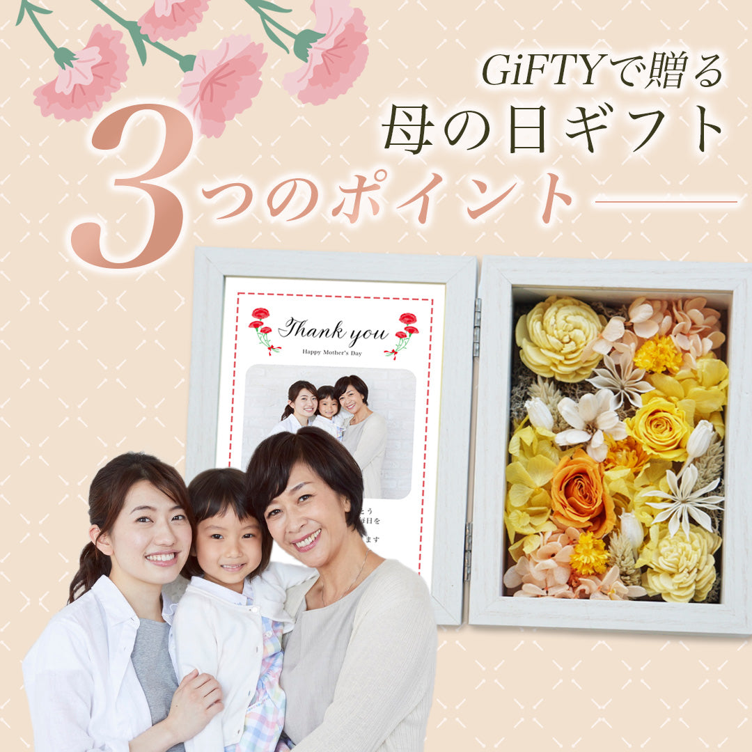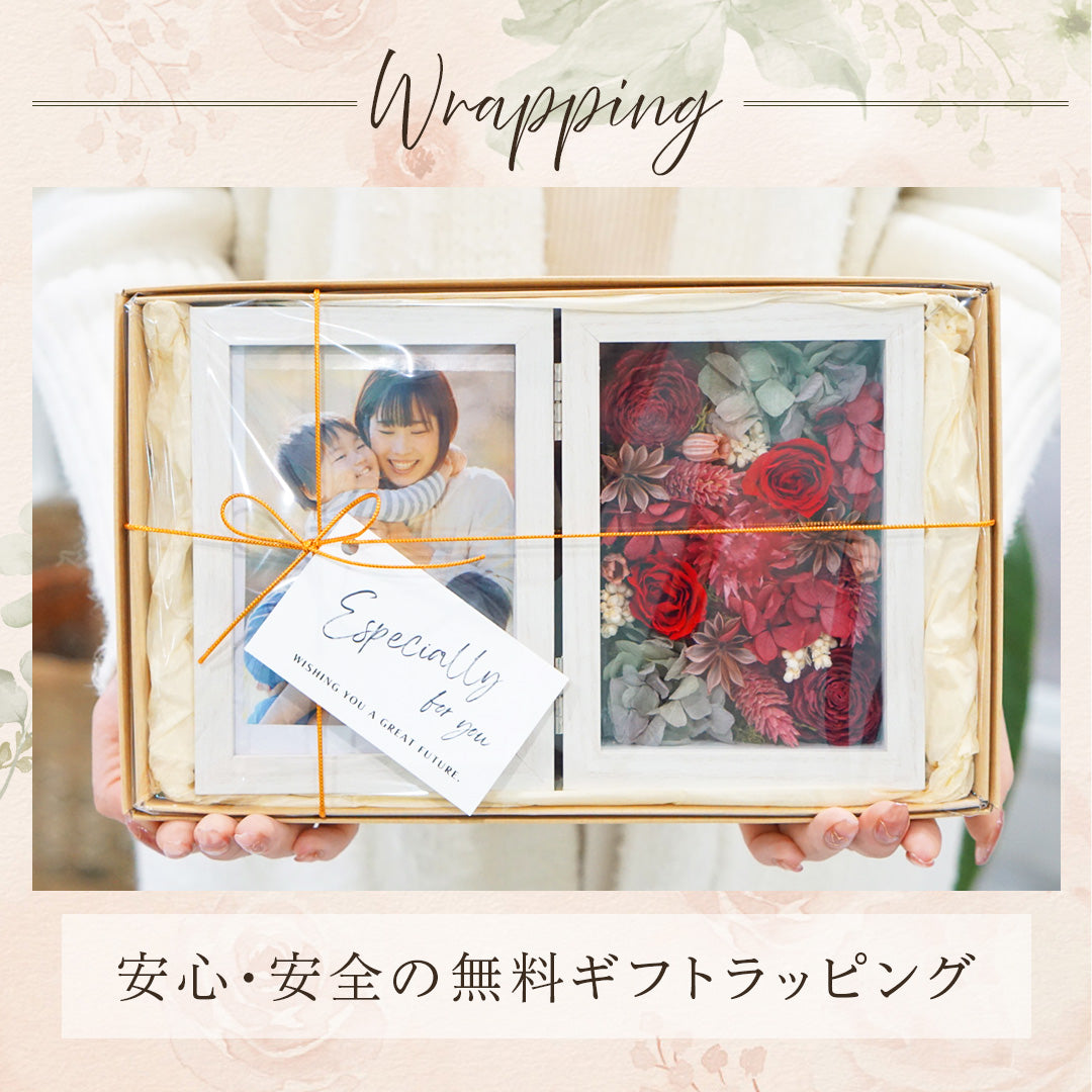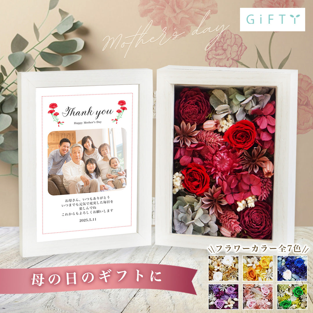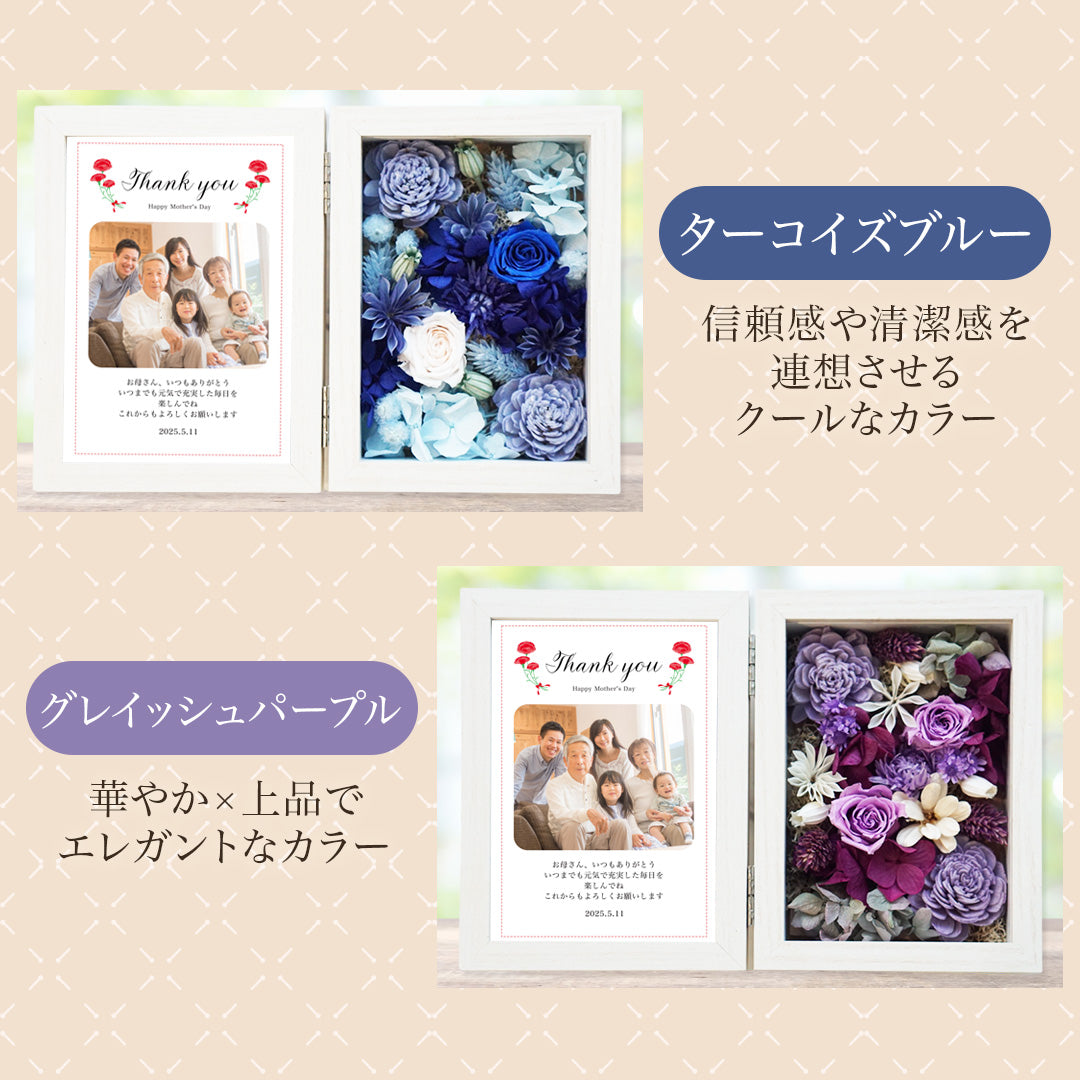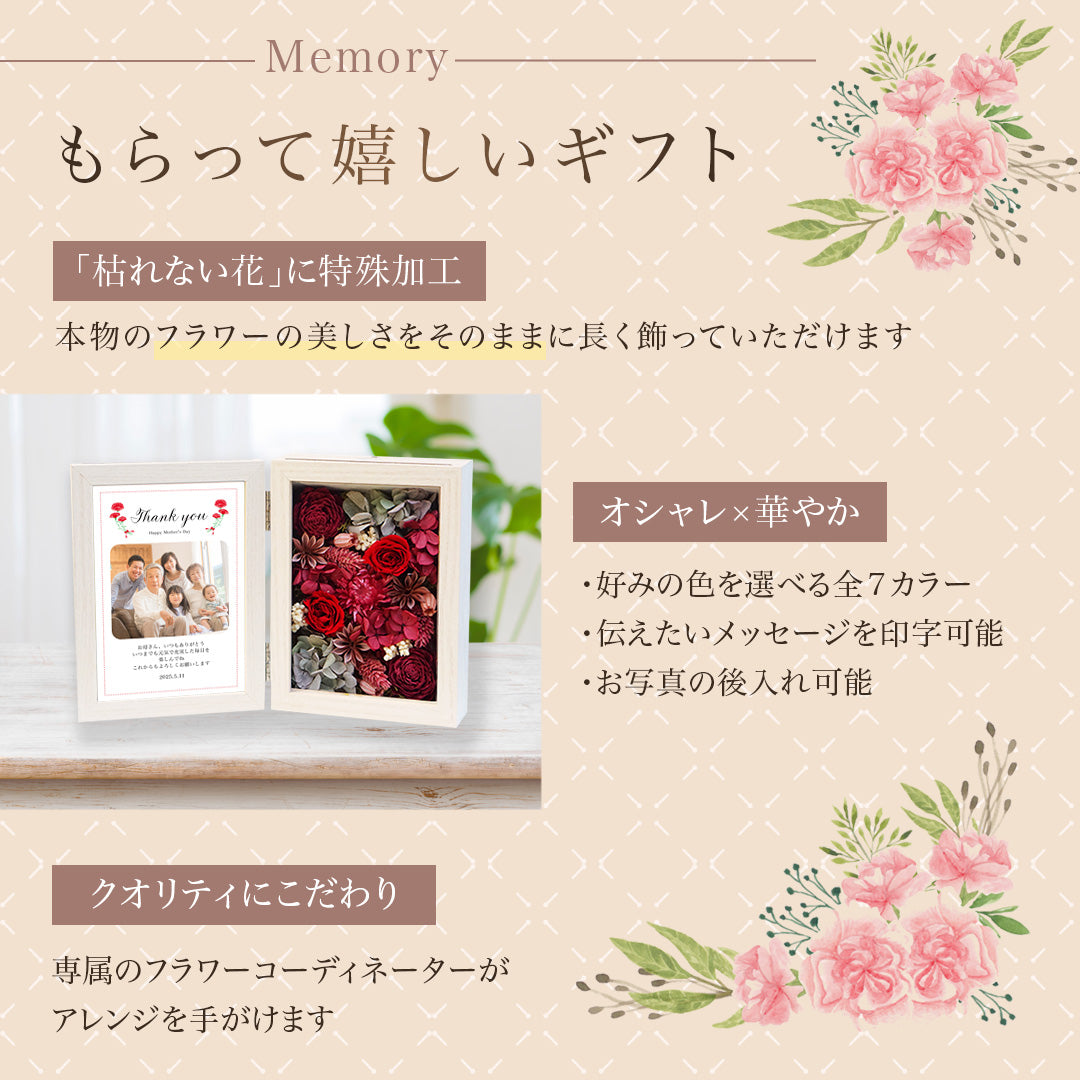 自然素材を使用したナチュラルなデザインで、日頃の感謝の気持ちを込めたお写真とフラワーのギフトは母の日にぴったりです!