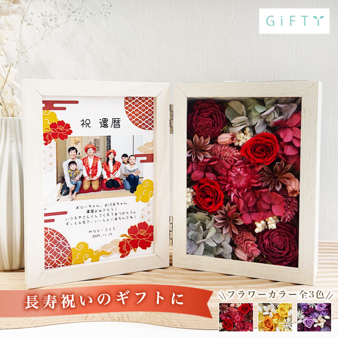 ホワイトの木製フレームを使用し、当店オリジナルのデザインと共に印刷して世界に一つのプレゼントがお仕立てできます。また写真の後もありますので、お好きなお写真をそのままお楽しみいただけます。 ドライフラワーやプリザーブドフラワーの