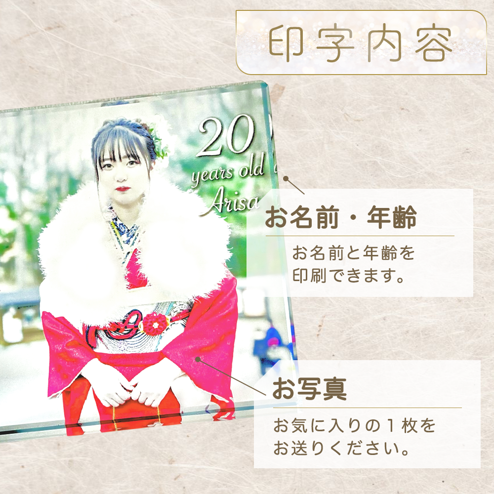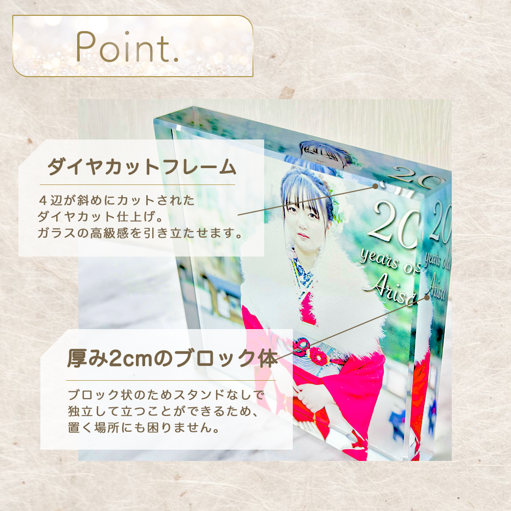 お写真1枚とメッセージを組み合わせて作れるガラスブロック。
