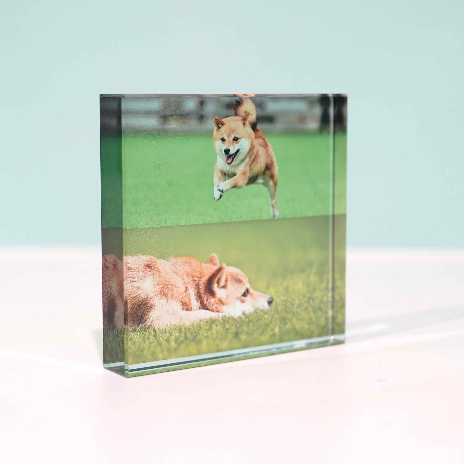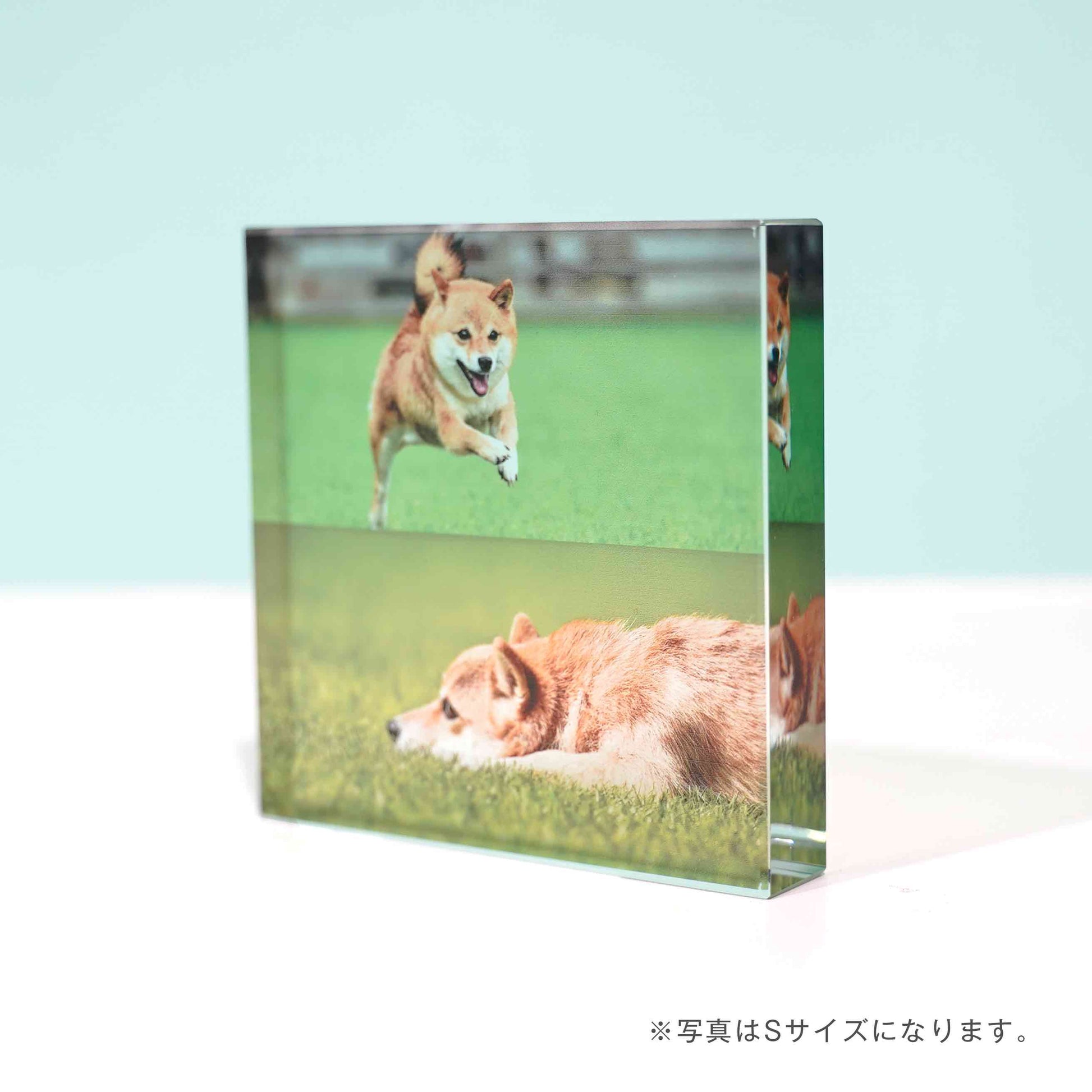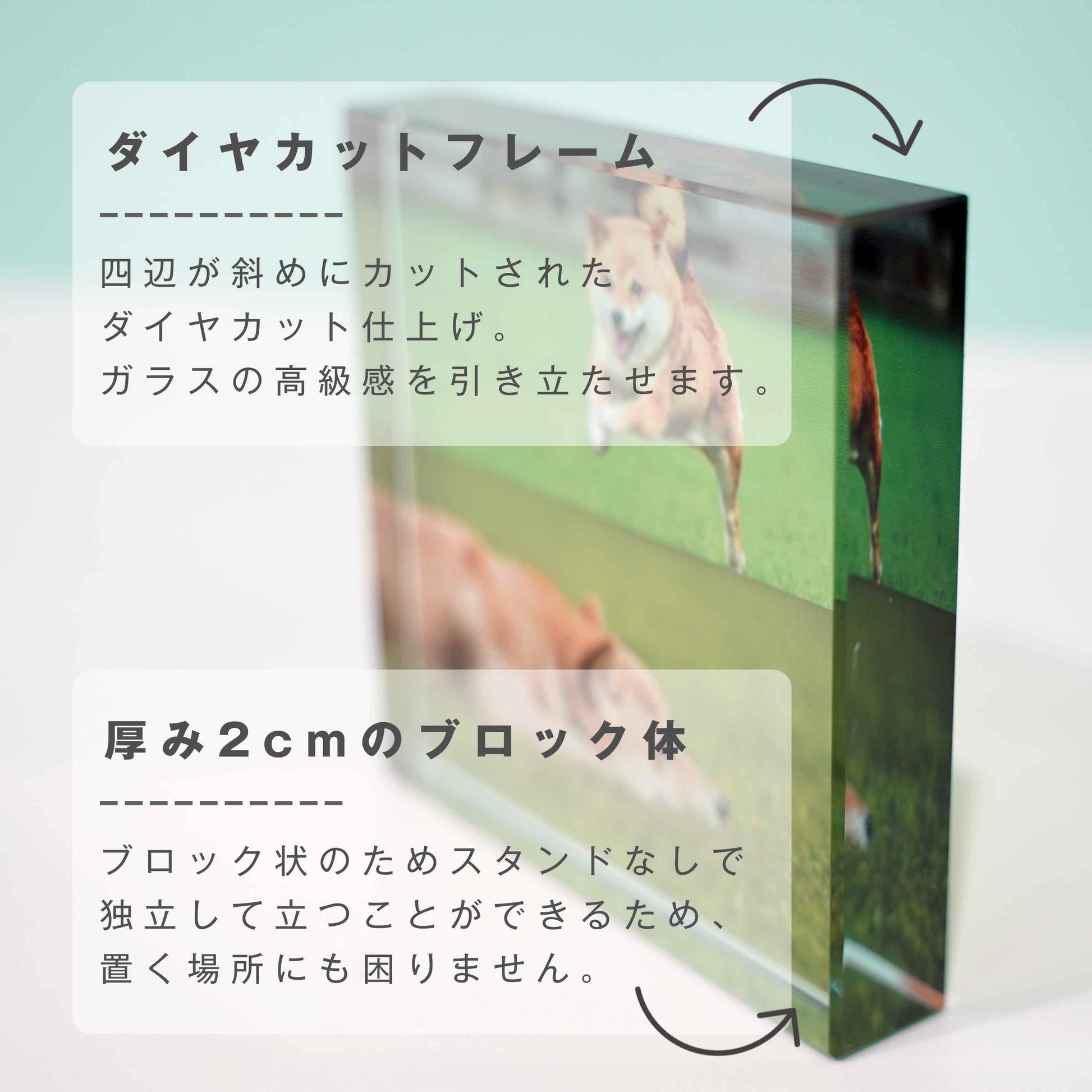 お写真2枚とメッセージを組み合わせて作れるガラスブロック。