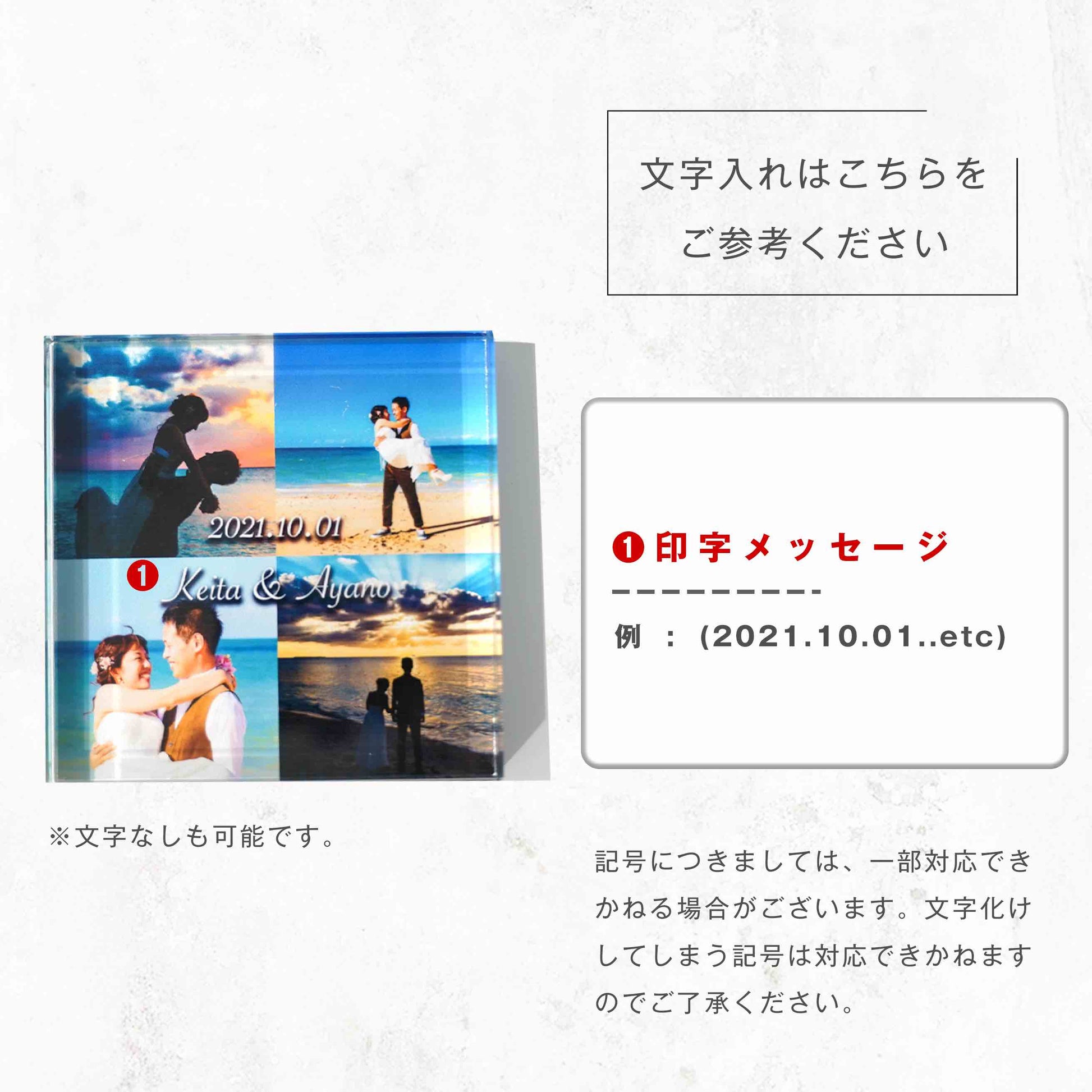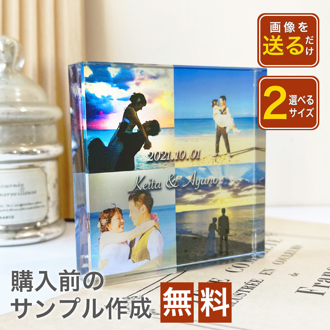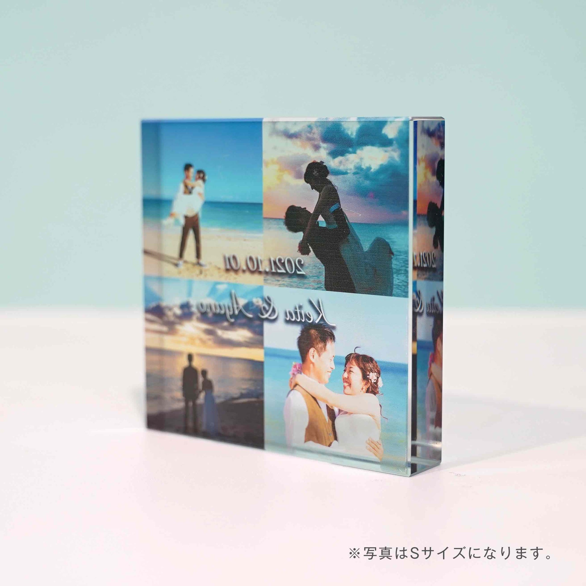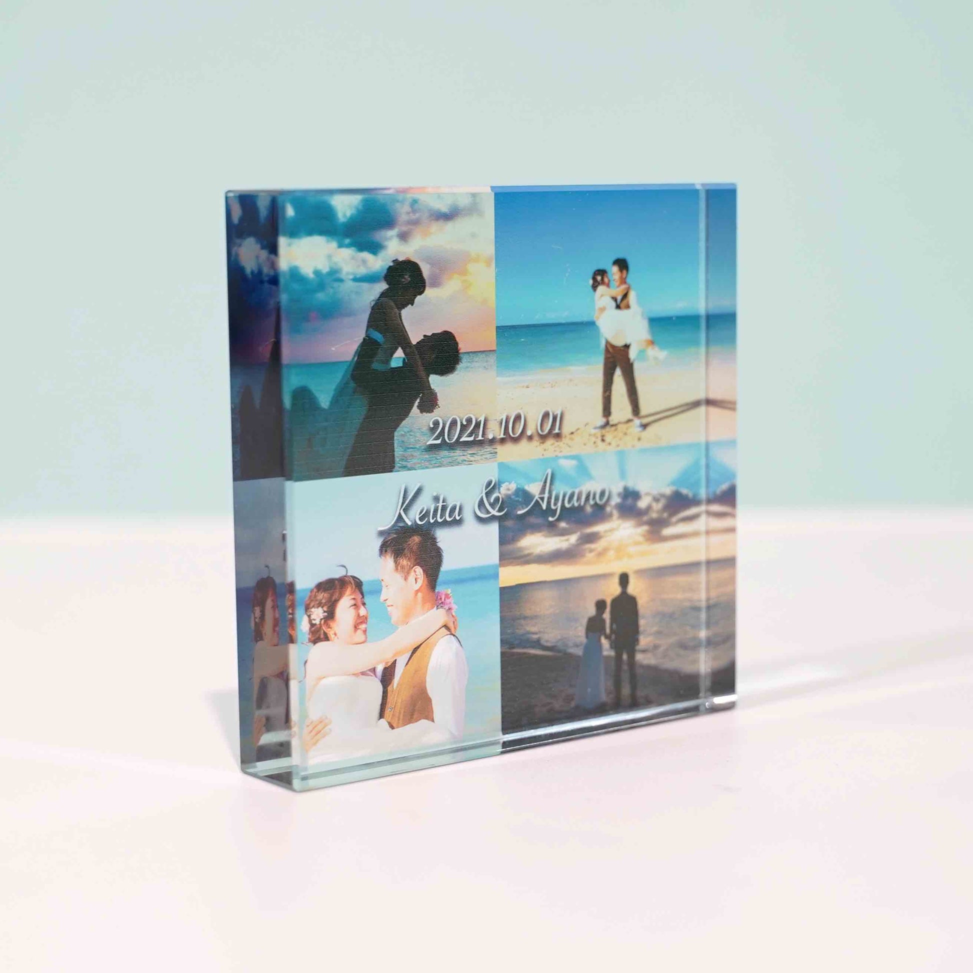 お写真4枚とメッセージを組み合わせて作れるガラスブロック。