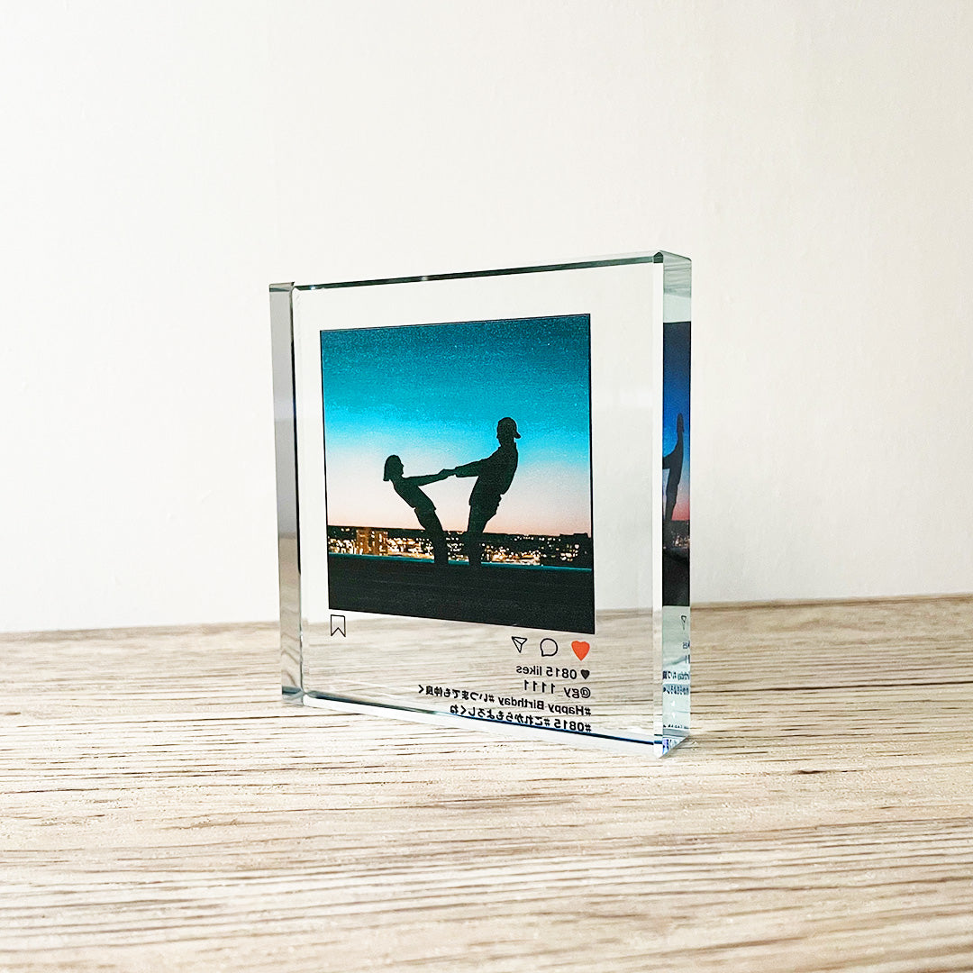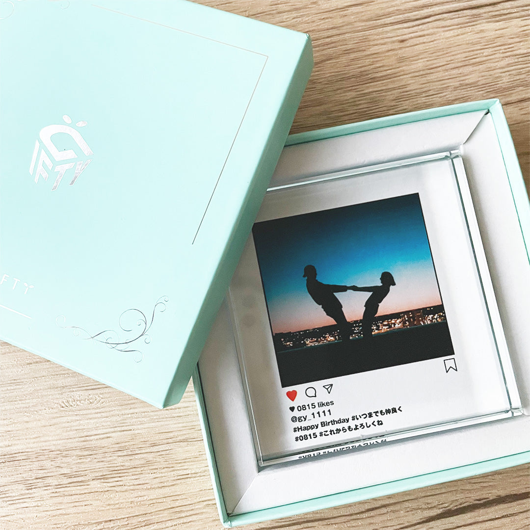ガラス特有の重厚感が高級感を演出。ガラスの透明感を生かし半透明で印刷することでまるでガラスの中に写真があるような特別な存在感を演出してくれる商品です。