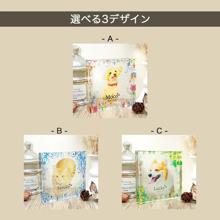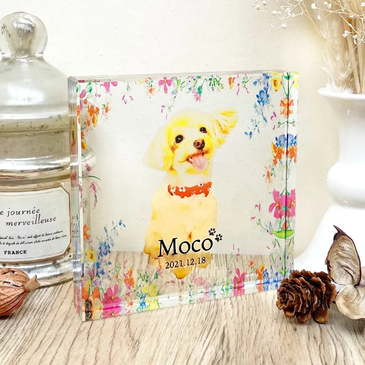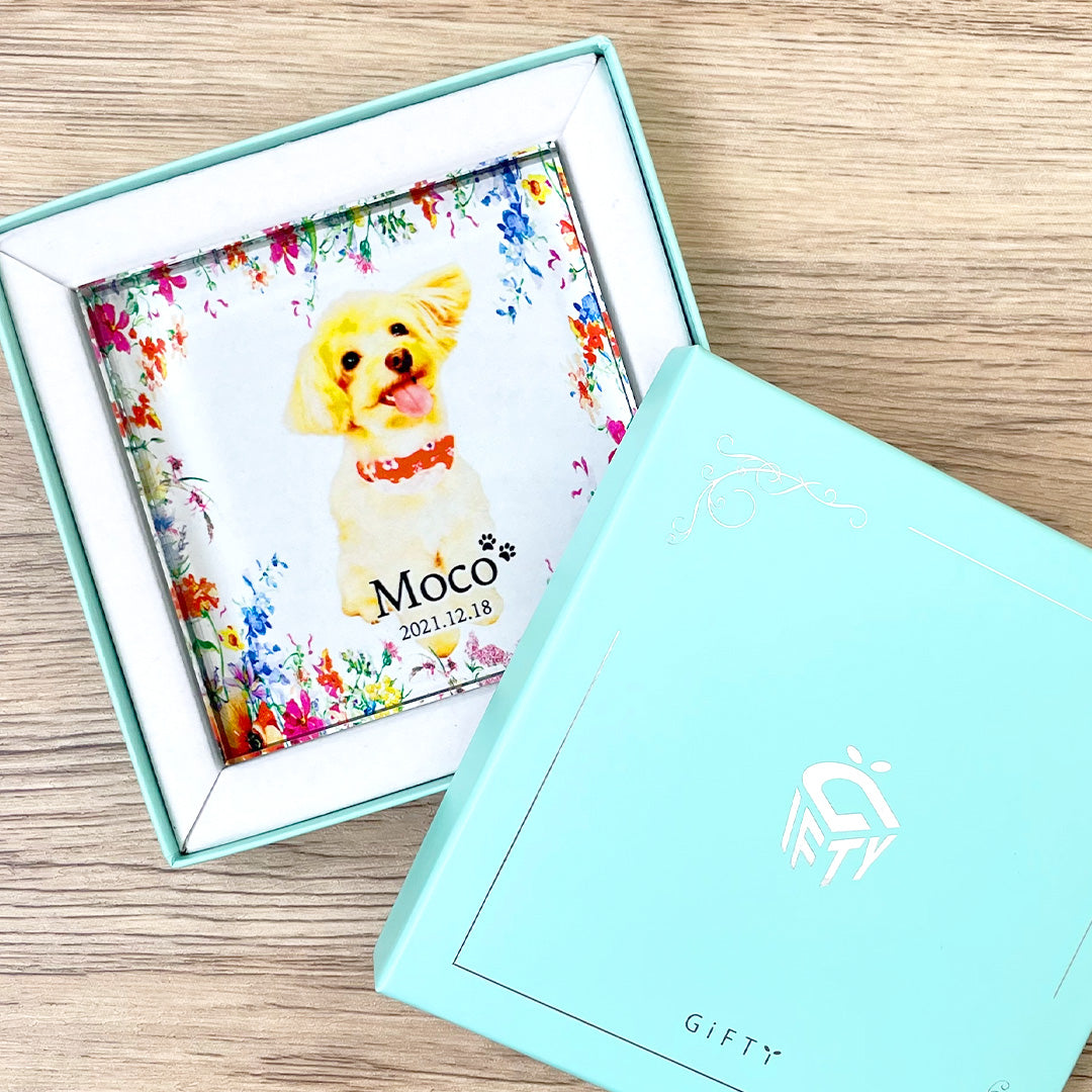 ペットのお写真1枚とメッセージを組み合わせて作れるガラスブロック。