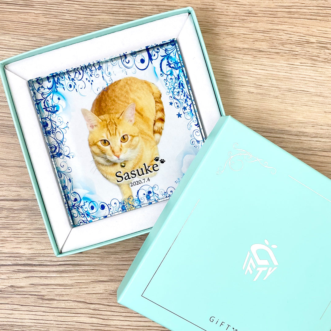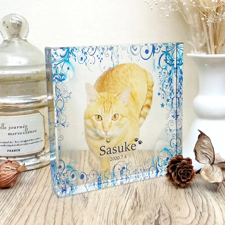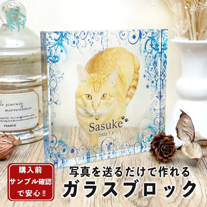 ペットのお写真1枚とメッセージを組み合わせて作れるガラスブロック。