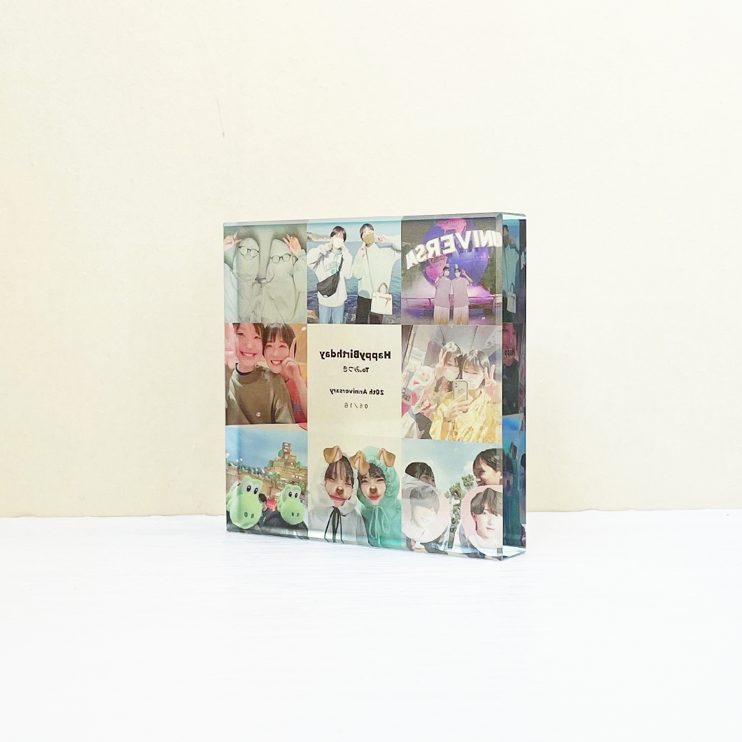 ガラス特有の重厚感が高級感を演出。ガラスの透明感を生かし半透明で印刷することでまるでガラスの中に写真があるような特別な存在感を演出してくれる商品です。
