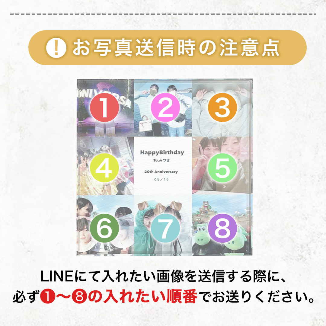 8枚の写真と真ん中にお文字を添えた大人気デザイン。