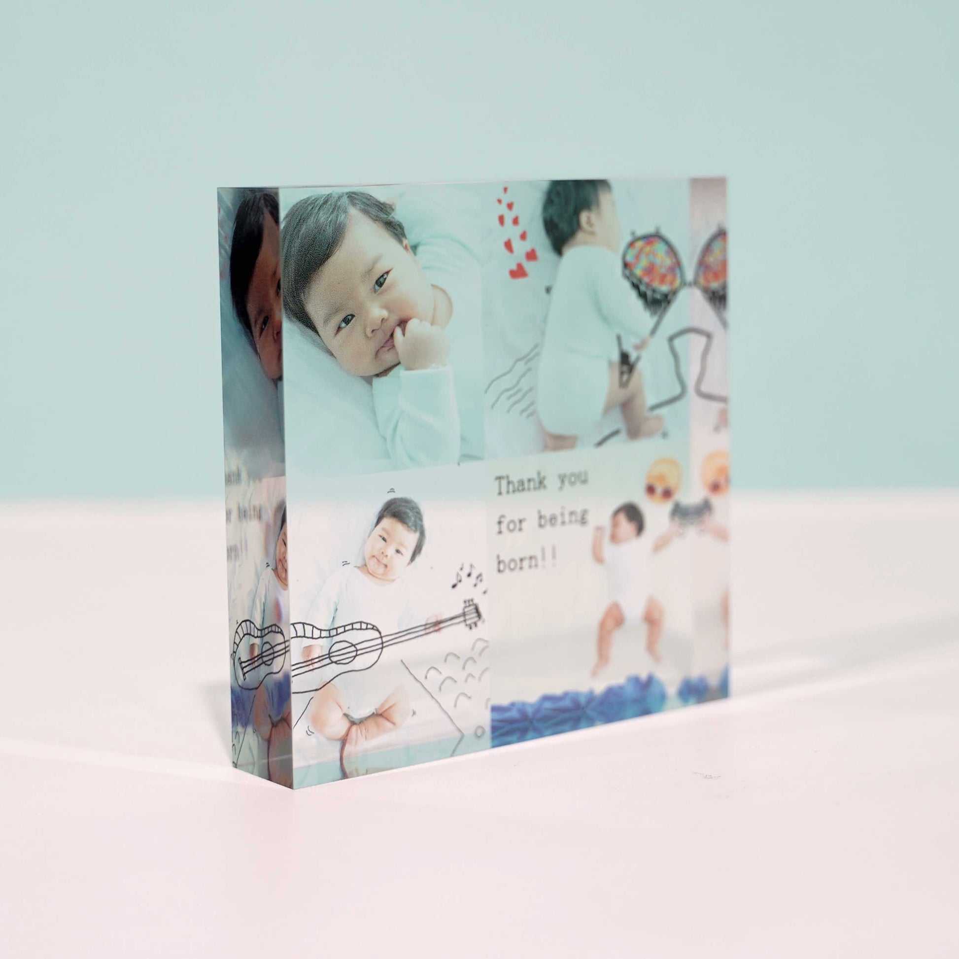お写真4枚とメッセージを組み合わせて作れるアクリルブロック。