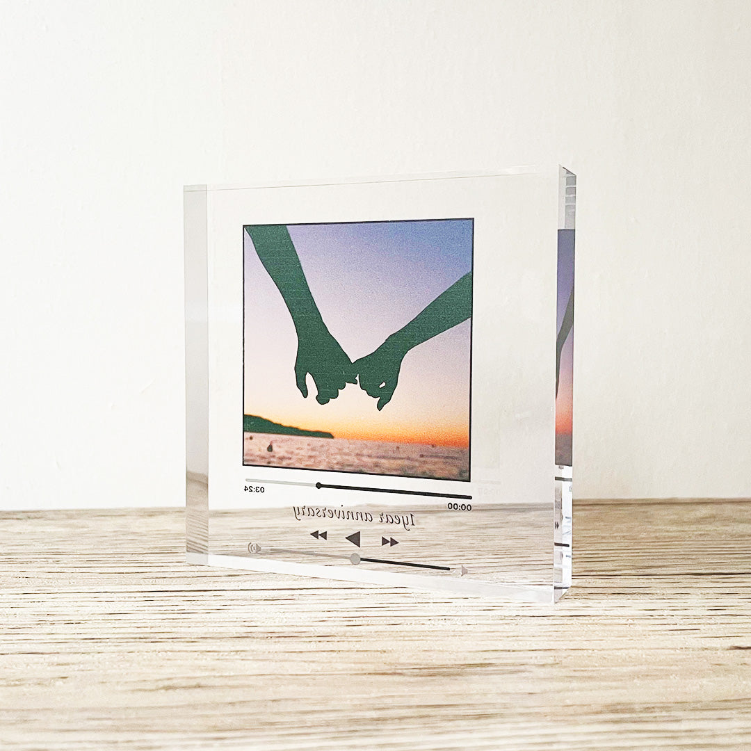 奥行きのある立体的なブロックに、アクリルの透明感を生かすため半透明で印刷することでまるでアクリルの中に写真があるような特別な存在感を演出してくれる商品です。
