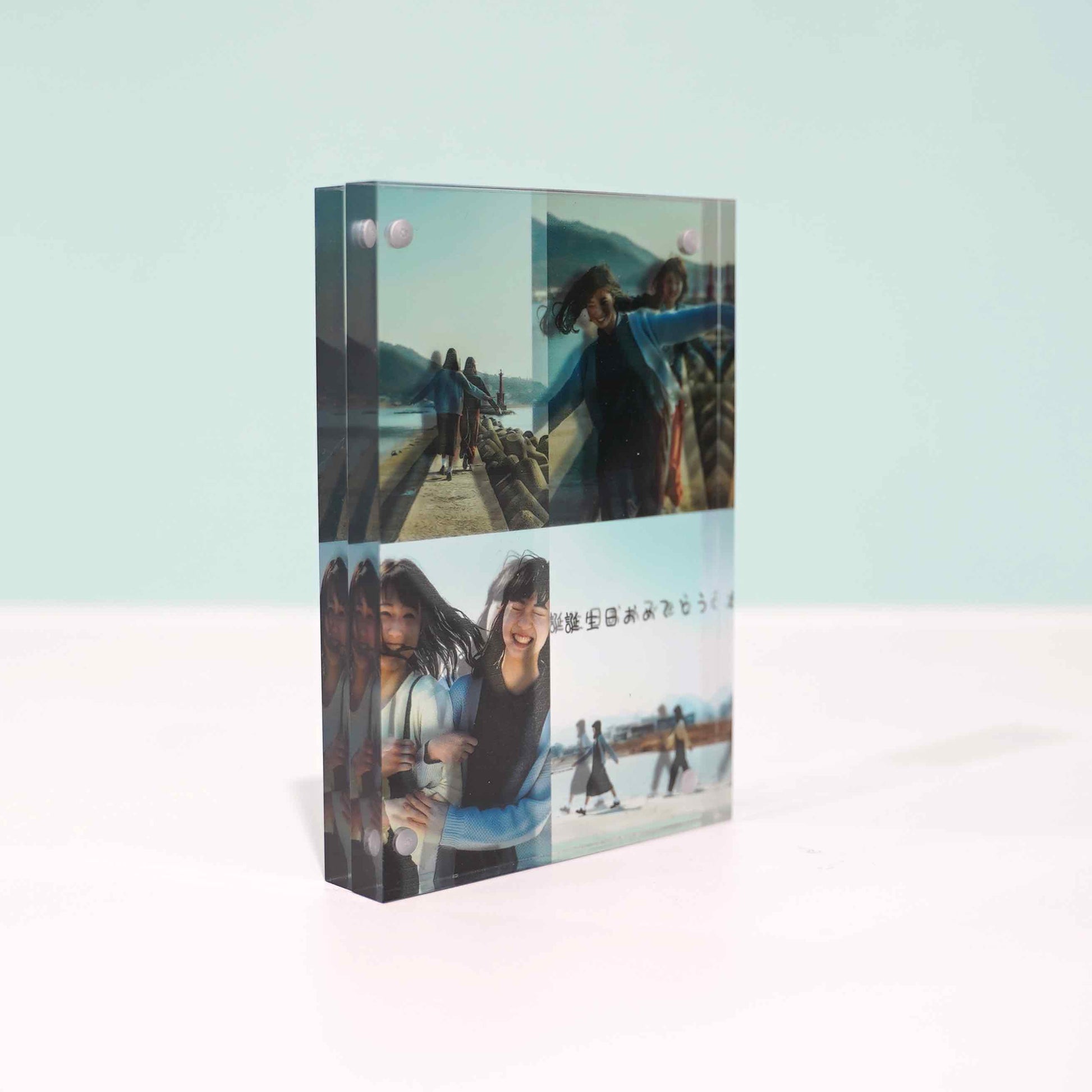お写真4枚とメッセージを組み合わせて作れる3Dアクリル。