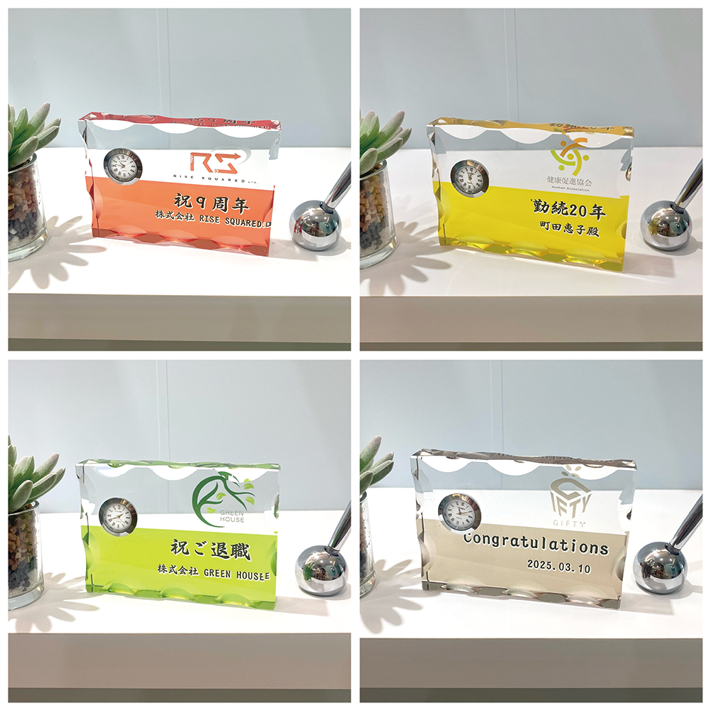 記念品 MVP 表彰 クリアスタる 時計 周年祝いガラス置き時計 #G10