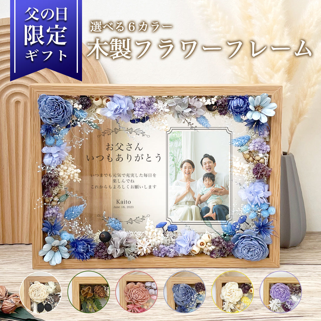 【父の日ギフト】メッセージ付き 木製ガラス感謝状 木製フラワーフレーム 感謝状 i29
