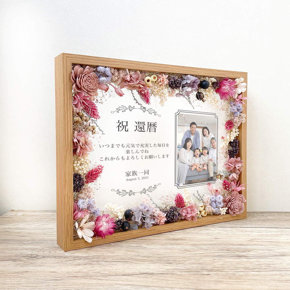 【長寿祝いギフト】日頃の感謝を伝える感謝状 木製フラワーフレーム ガラスに刻まれた感謝状 長寿祝い 還暦 古希 喜寿 傘寿 米寿 卒寿 プリザーブドフラワー ドライフラワー メッセージ 花束 バラ お祝い プレゼント ギフト家族 i32