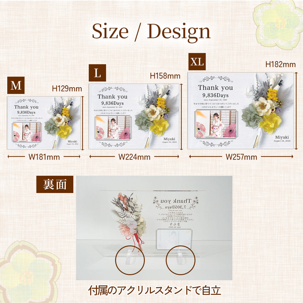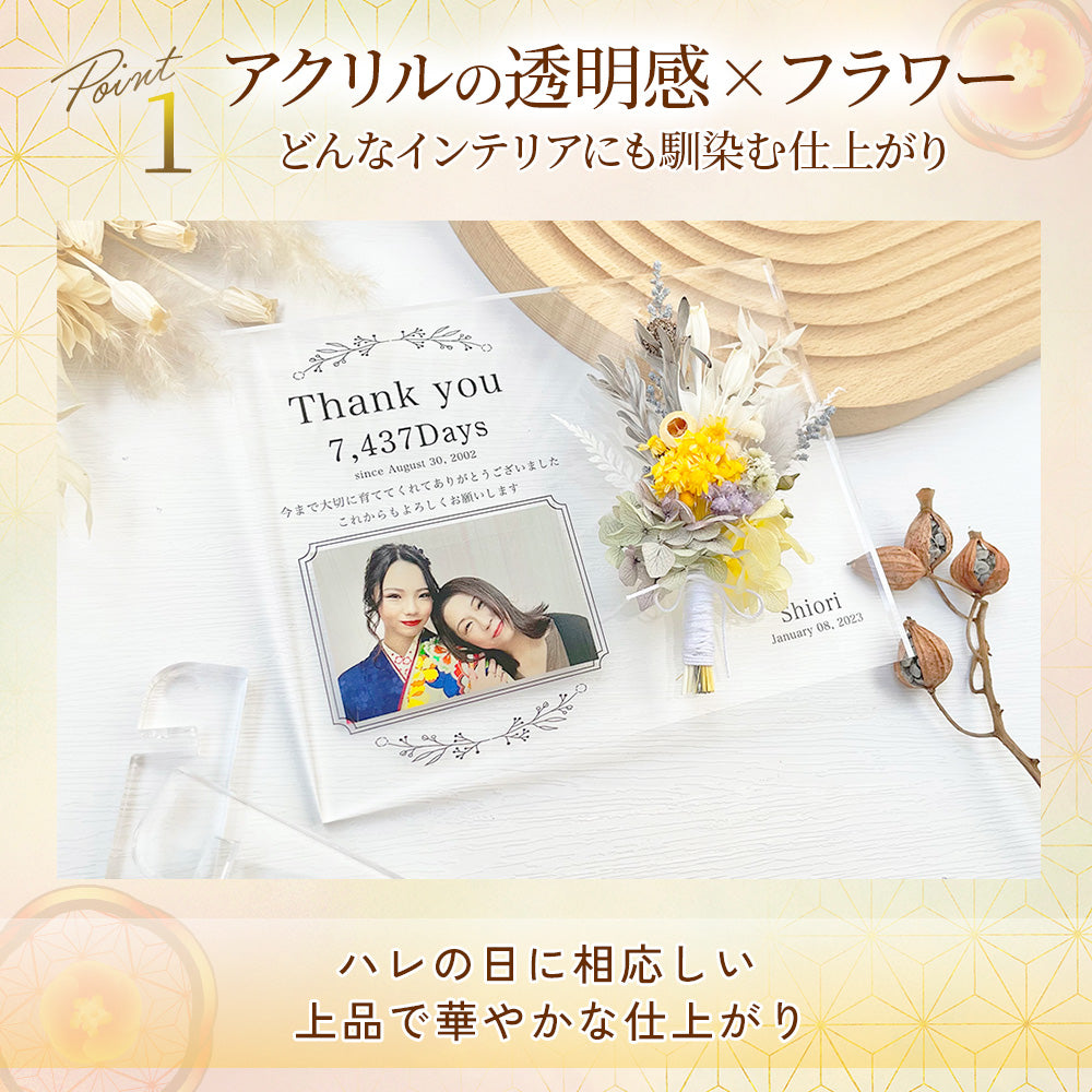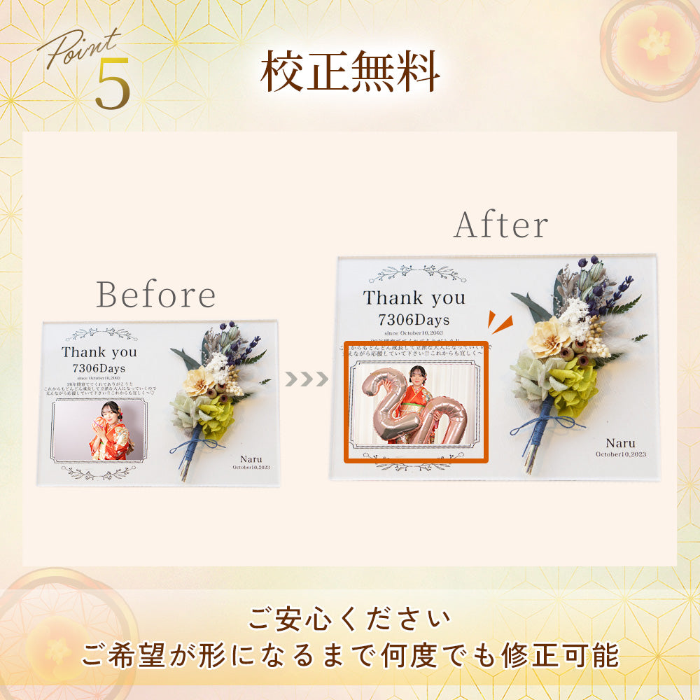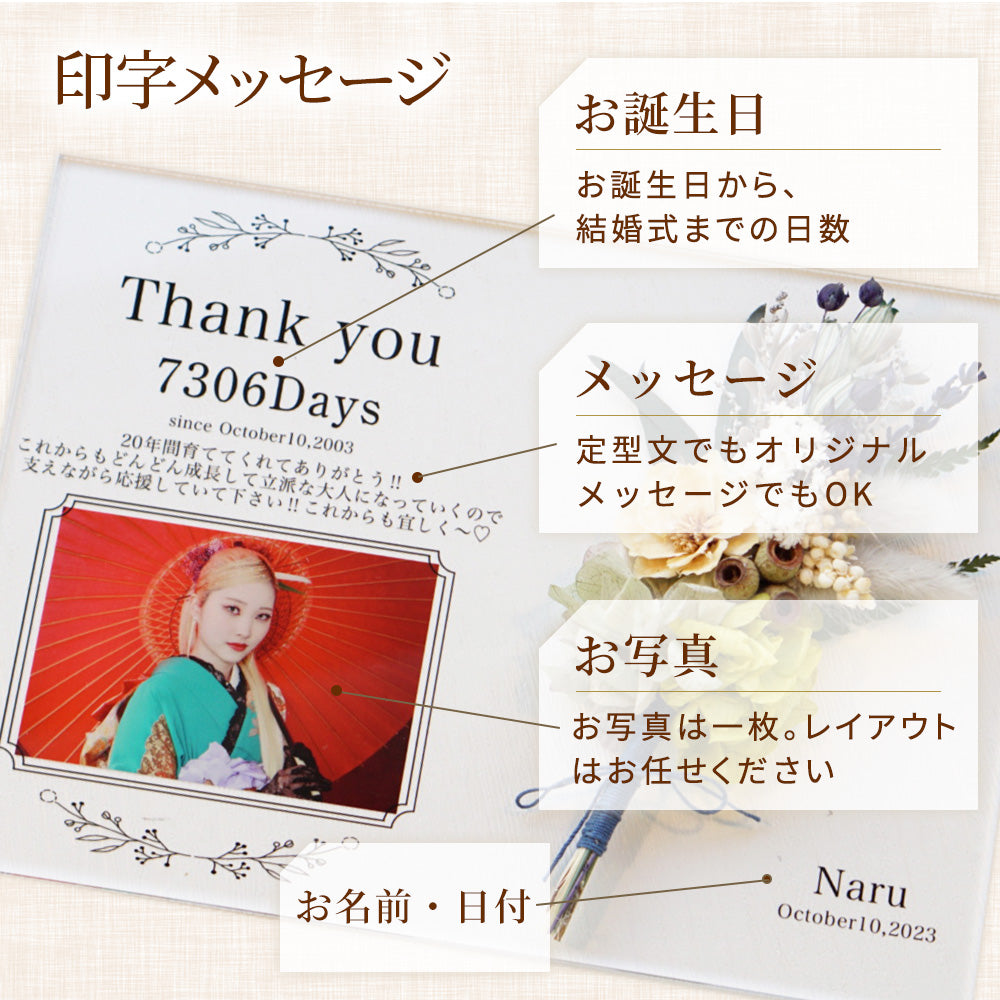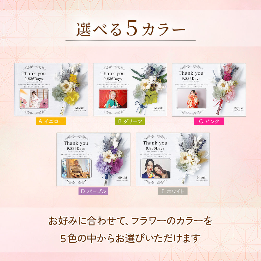プリザーブドフラワーの花束をあしらった子育て感謝状です。