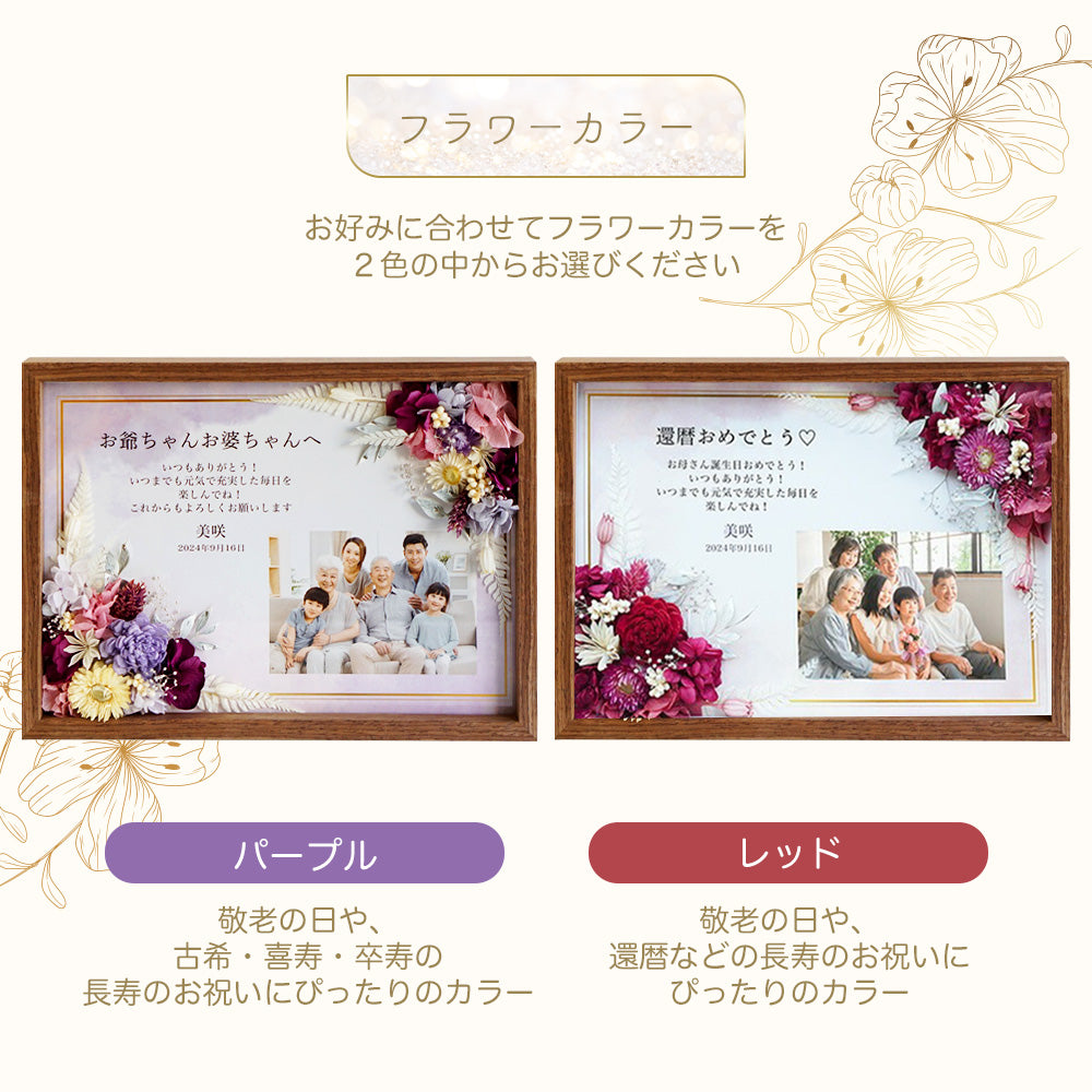 【i48 長寿祝い フラワーフォトボックス 】長寿祝い 名入れ 名前入り メッセージ プレゼント ギフト 写真 写真立て お花 花 フラワー プリザーブドフラワー ドライフラワー 2024 おばあちゃん おじいちゃん フォトフレーム 孫から オーダーメイド オリジナル フラワーギフト
