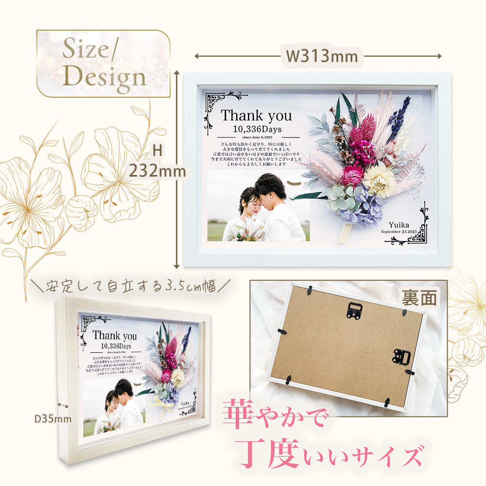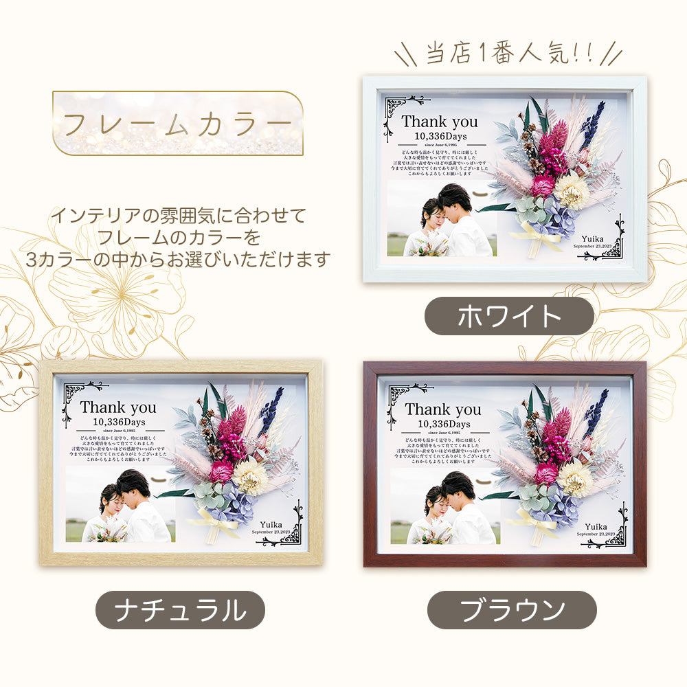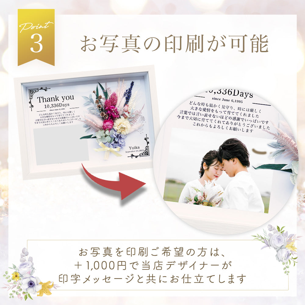i49-1 子育て感謝状 結婚 結婚式 日数 手作り テンプレート お花 花 花束 フラワー ブーケ 感謝 写真入り フォトフレーム 両親プレゼント 名入れ無料 メッセージ 挙式 披露宴 入籍 親ギフト ウエディング 韓国風 海外風