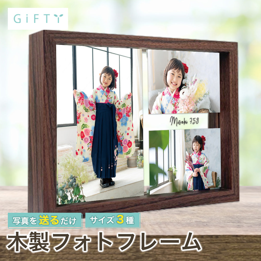 【 木製ガラスフレーム J06 】フォトフレーム 七五三 写真 プレゼント バースデー おしゃれ オリジナル 写真入り 複数 内祝い メッセージ ギフト スタンド 両親 誕生日 お宮参り 家族写真 100日祝い