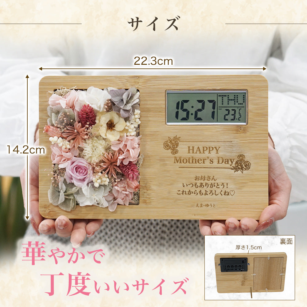 自然素材を使用したナチュラルなデザインで、日頃の感謝の気持ちを込めたお写真とフラワーのギフトは母の日にぴったりです!