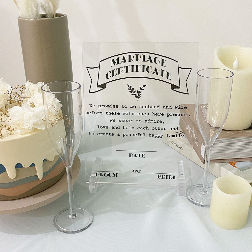 背景を透明にした高級感のあるアクリルの結婚証明書です。