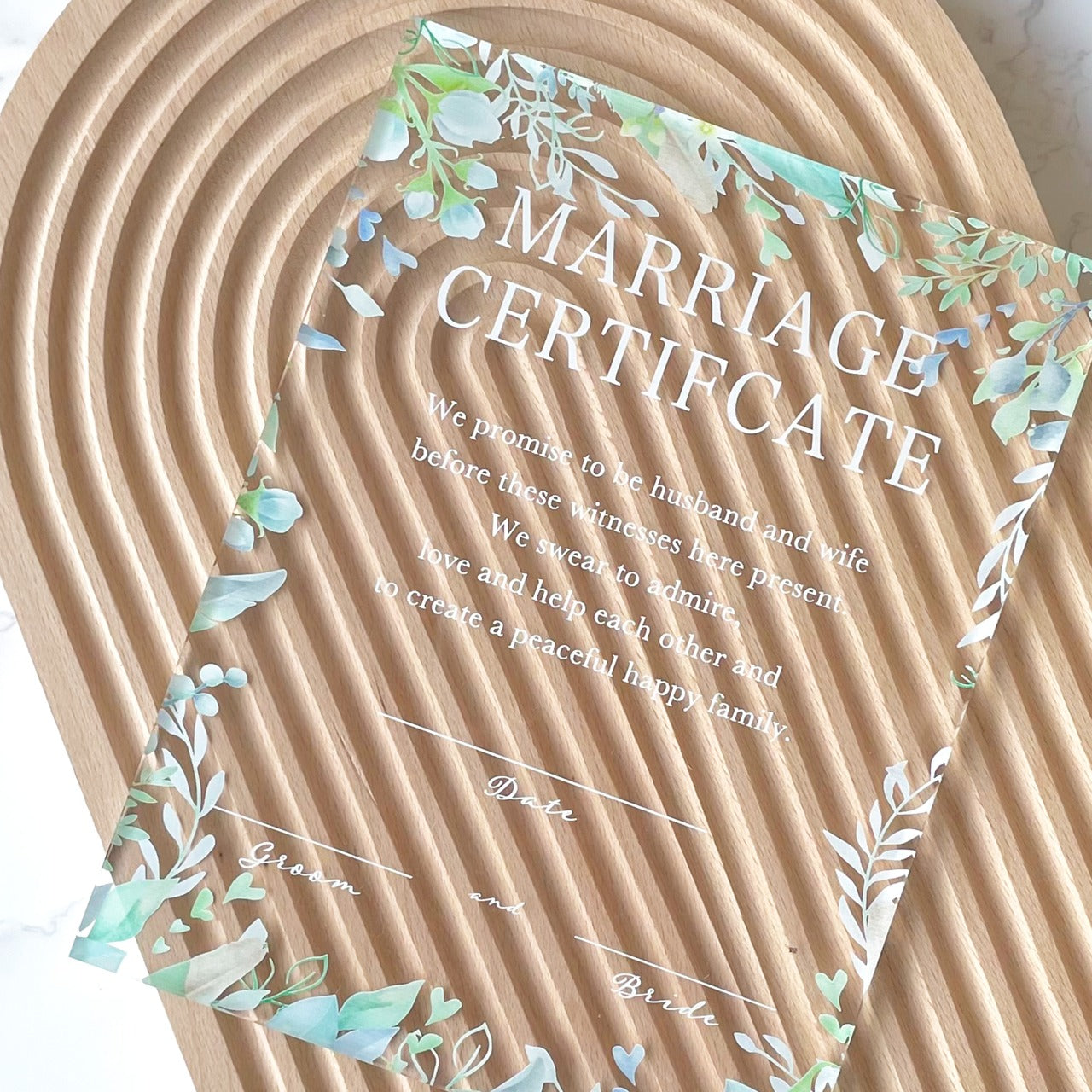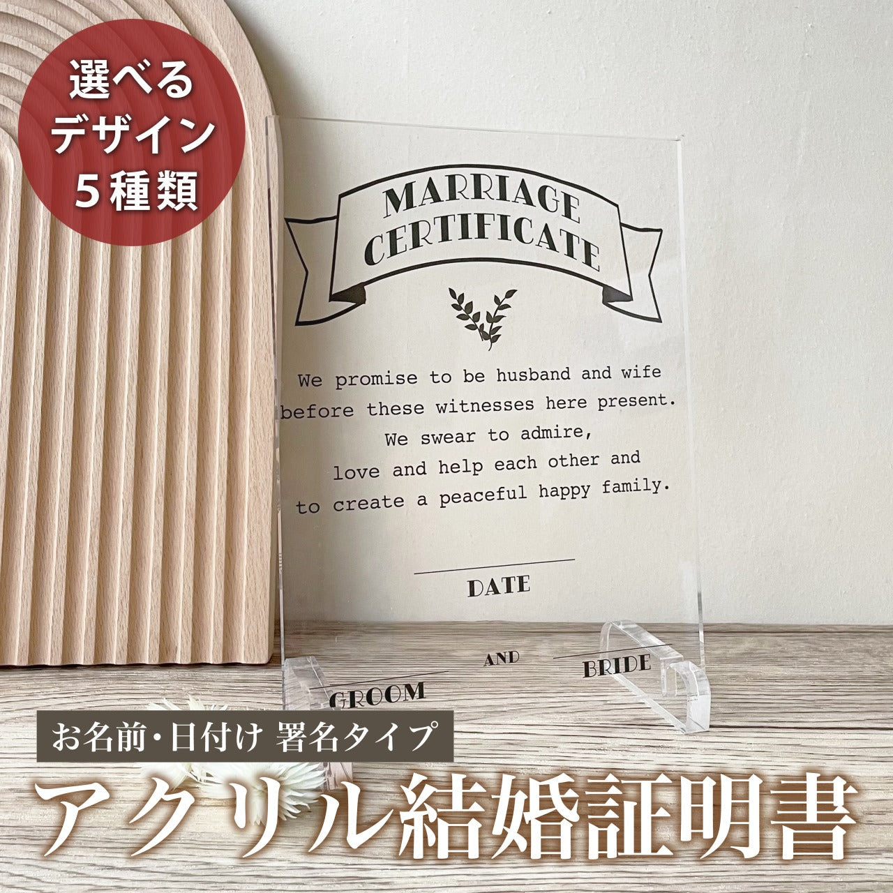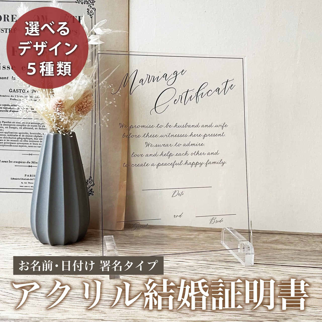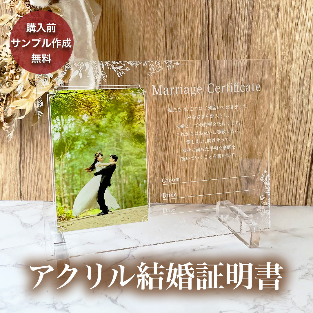 背景を透明にした高級感のあるアクリルの結婚証明書です。